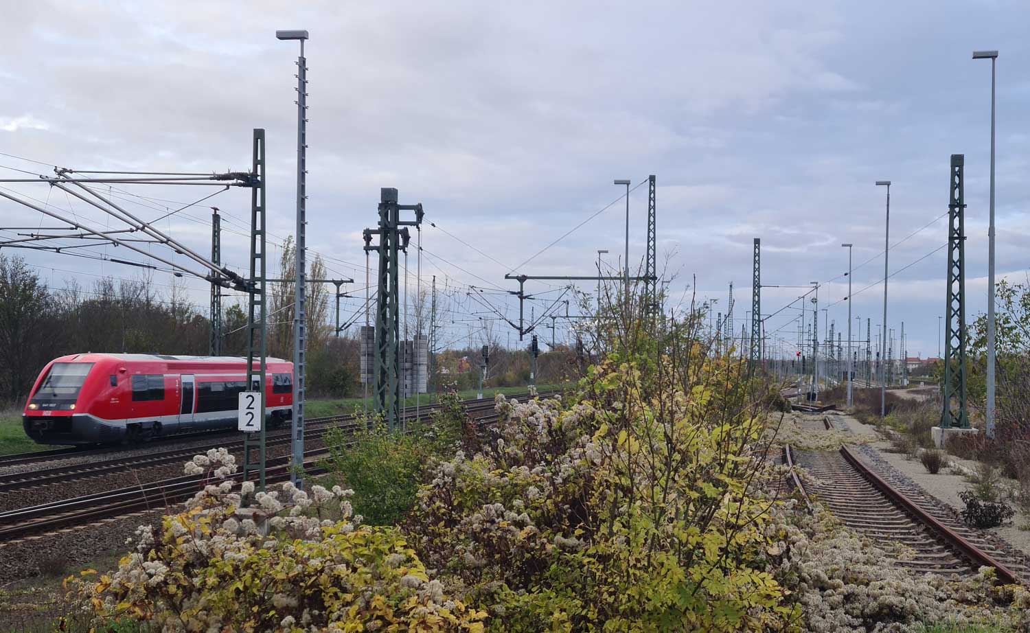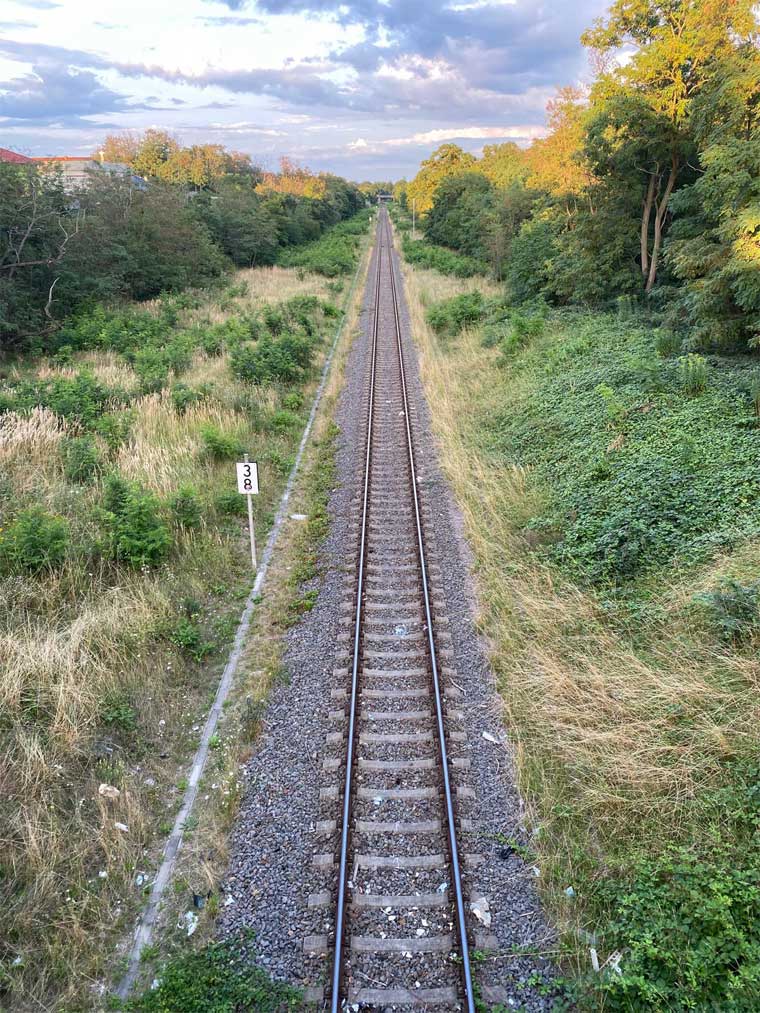 km 2,2 in Merseburg - Blick Richtung Leipzig-Leutzsch Foto: Dietmar Levie, 07.11.2022