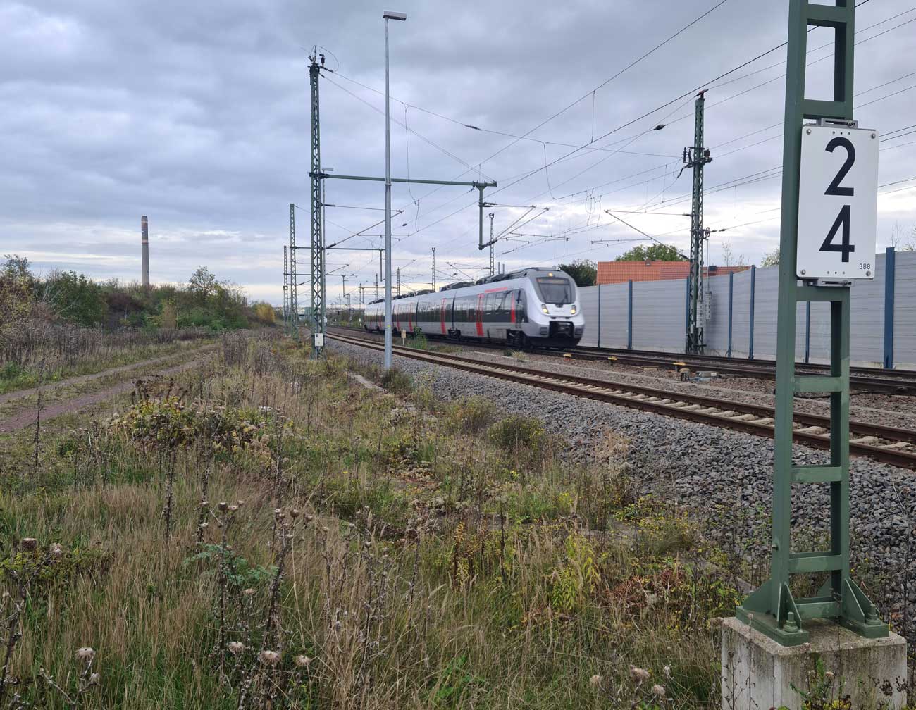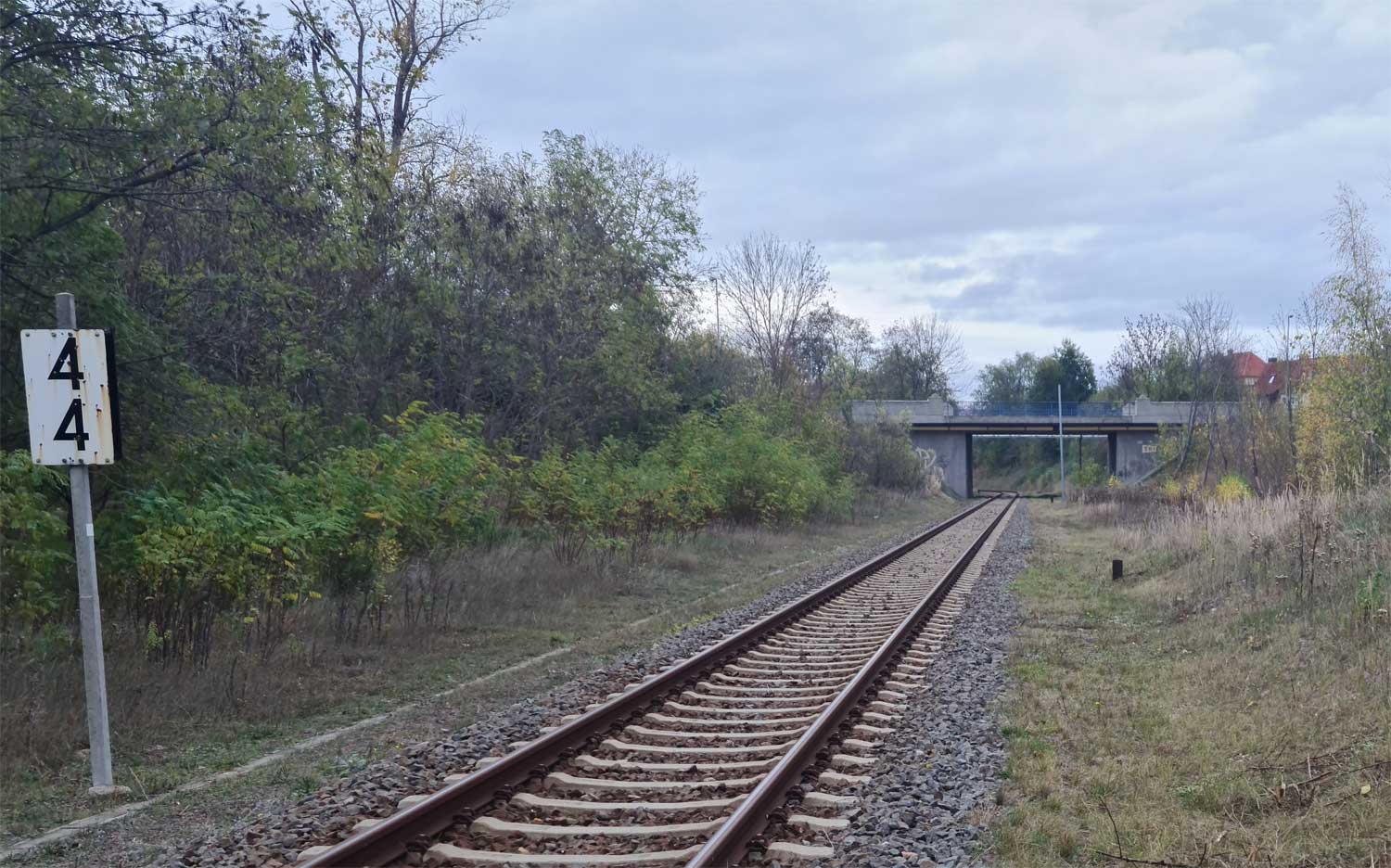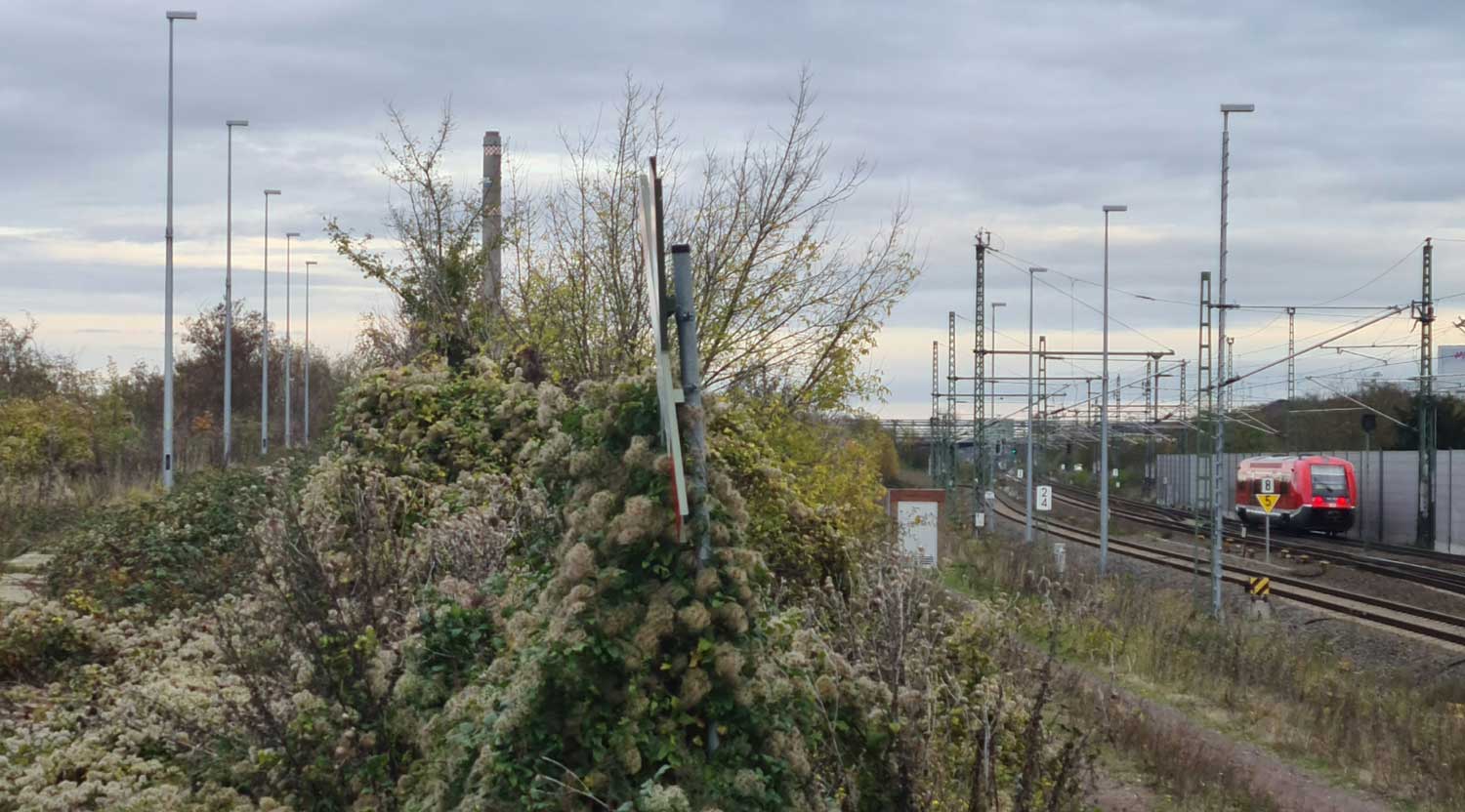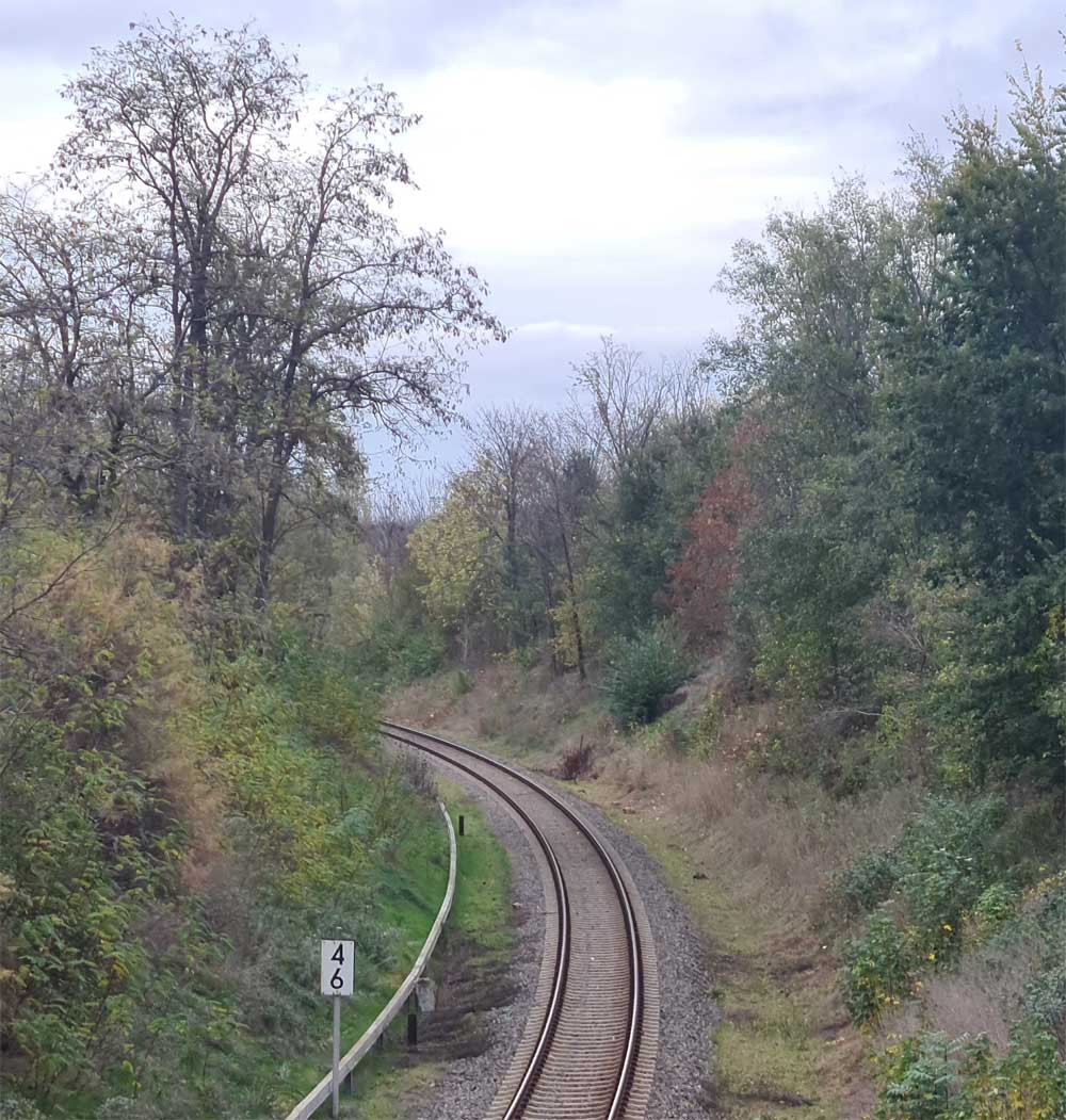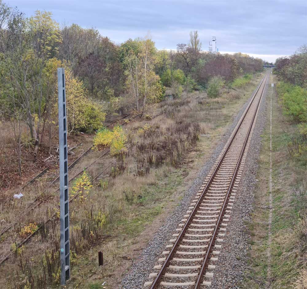 km 4,4 in Leuna - Blick Richtung Leipzig-Leutzsch Foto: Dietmar Levie, 07.11.2022