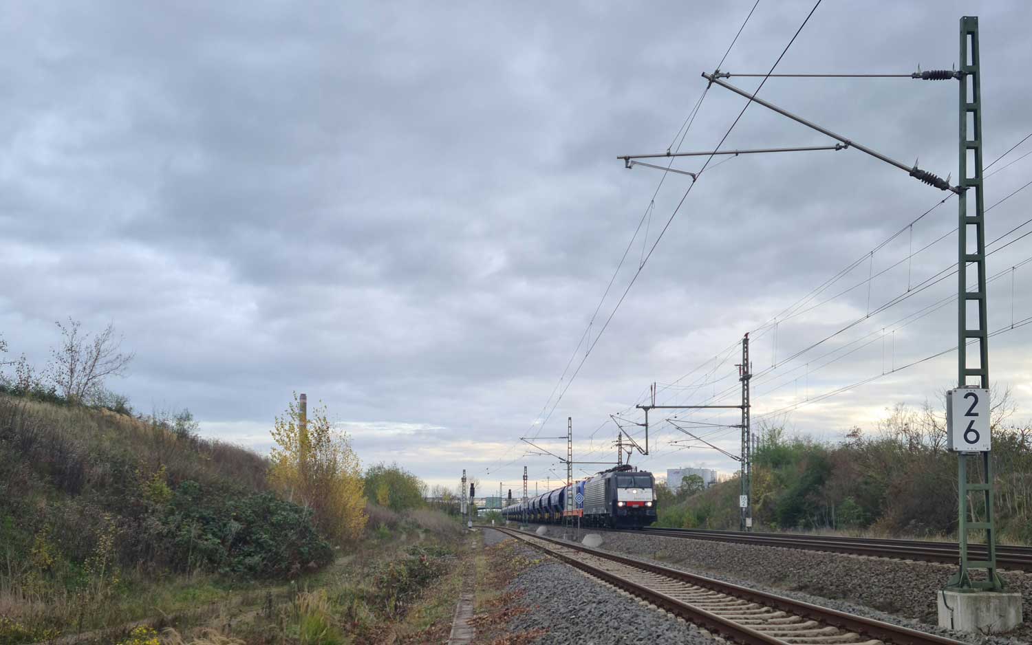 km 4,6 in Leuna - Blick Richtung Leipzig-Leutzsch Foto: Dietmar Levie, 07.11.2022