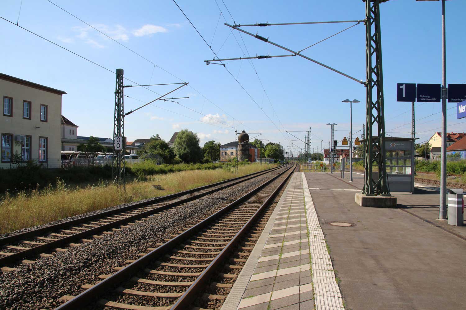 km 2,4 in Merseburg - Blick Richtung Streckenanfang km 16,0 (links) gehört zur Strecke Halle (Saale) Hbf - Erfurt Hbf - Eisenach - Bebra -