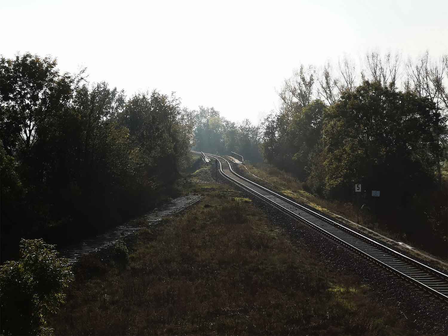 km 8,2 - Blick Richtung Merseburg Links die abgebaute Strecke nach Leipzig-Leutzsch, rechts das Anschlussgleis der Mitteldeutschen Umwelt- und