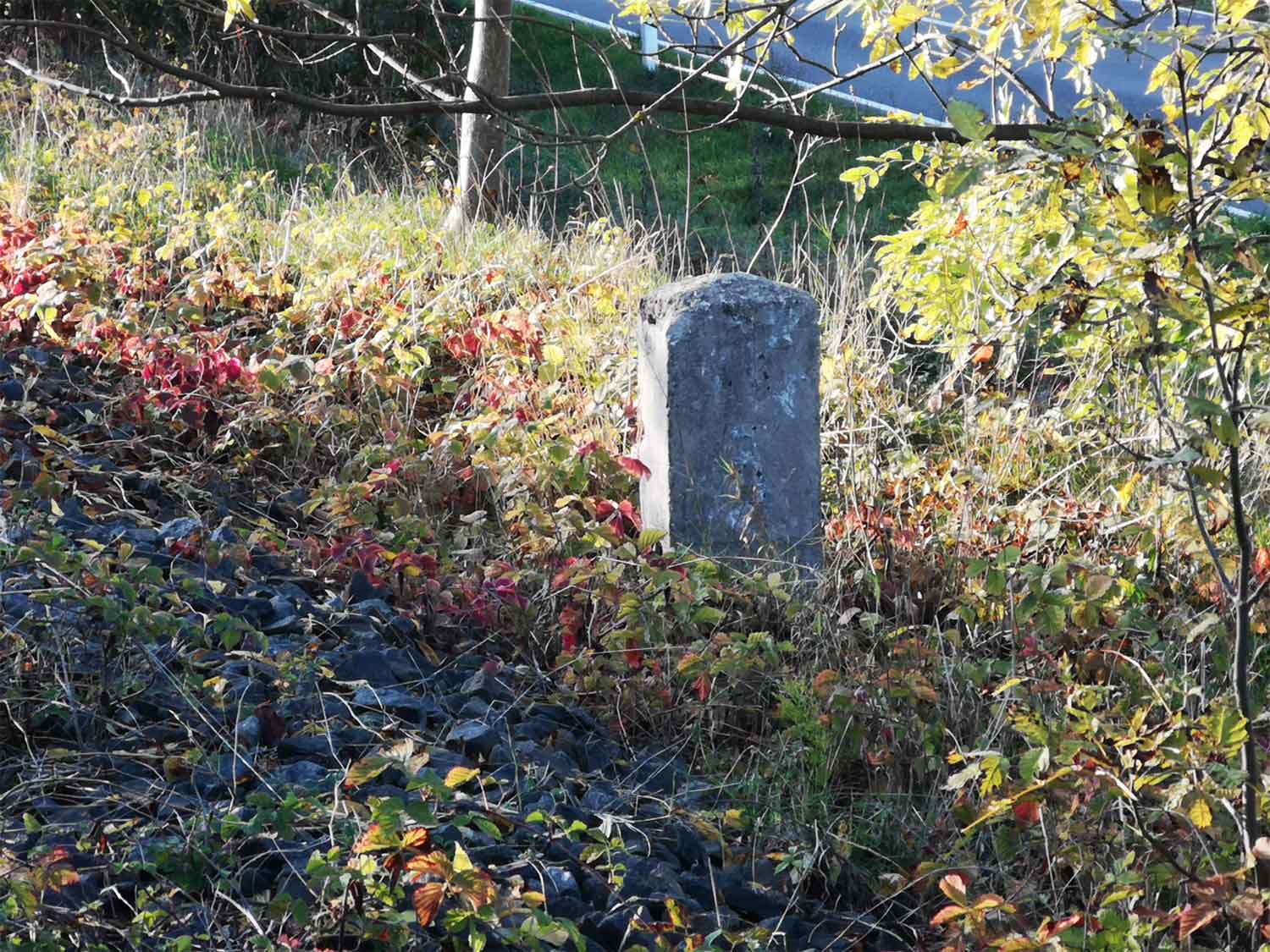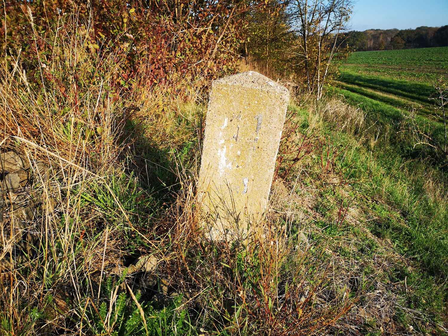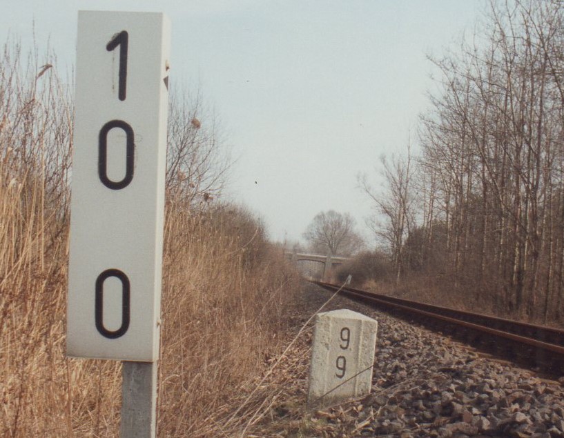 km 9,9 (Stein) und km 10,0 (Tafel) Foto: Dietmar Eichorn, 1995