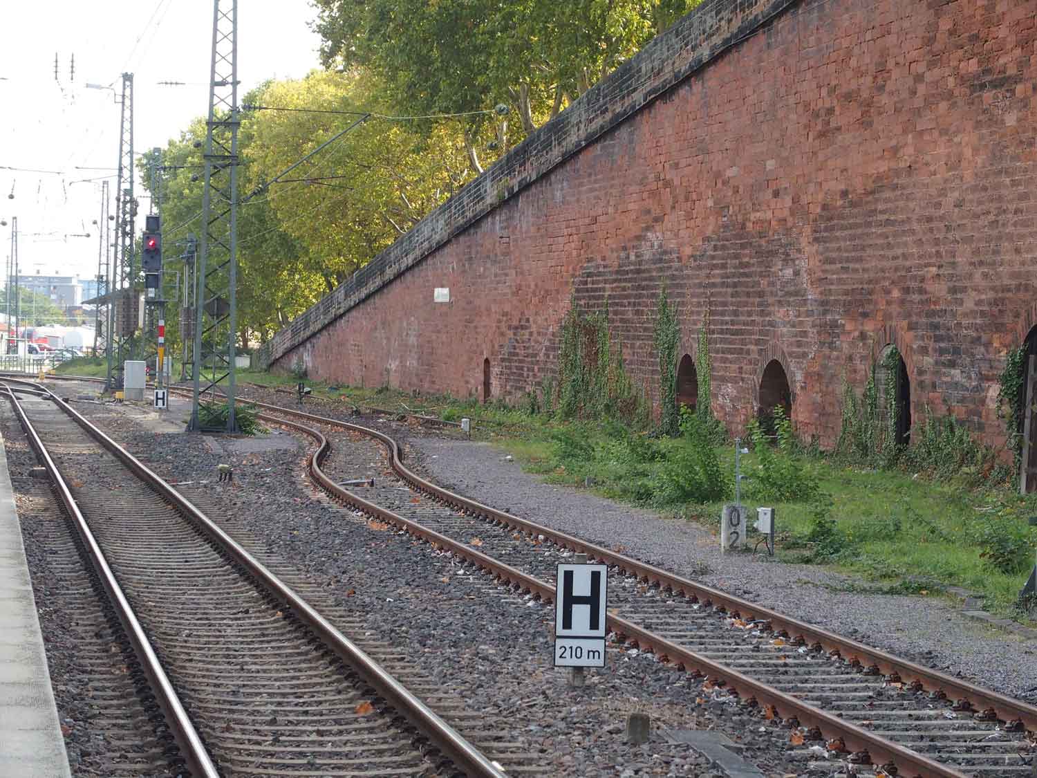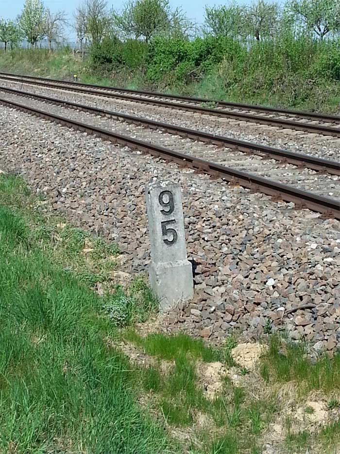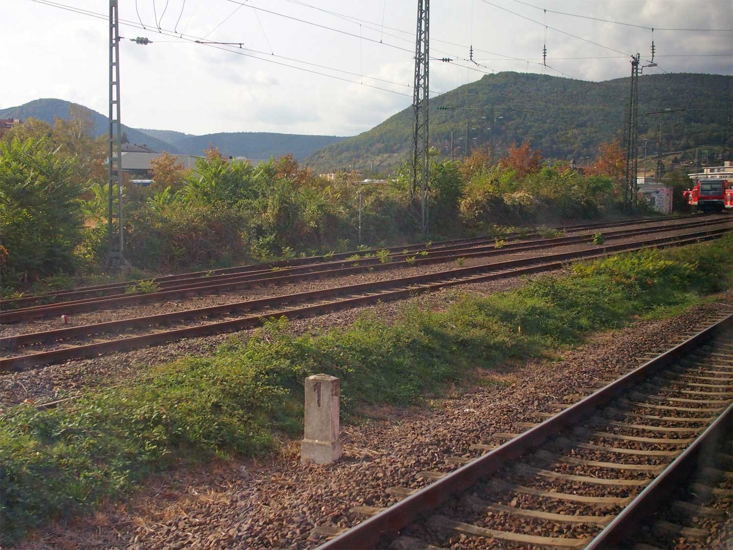 | km -1,16 der Strecke Neustadt (Weinstr) Hbf -1,16 - Bad Dürkheim 13,51 - Grünstadt 28,45 - Monsheim 38,04 | ||