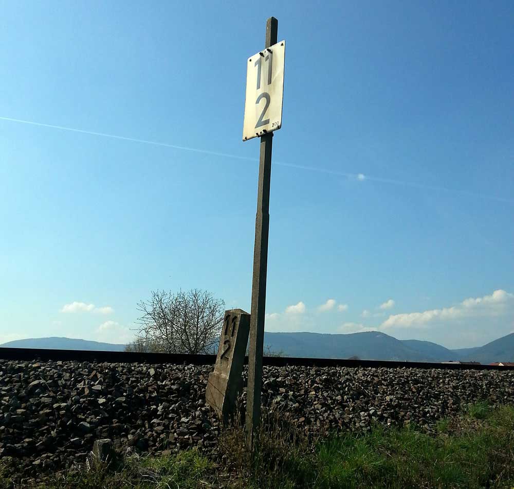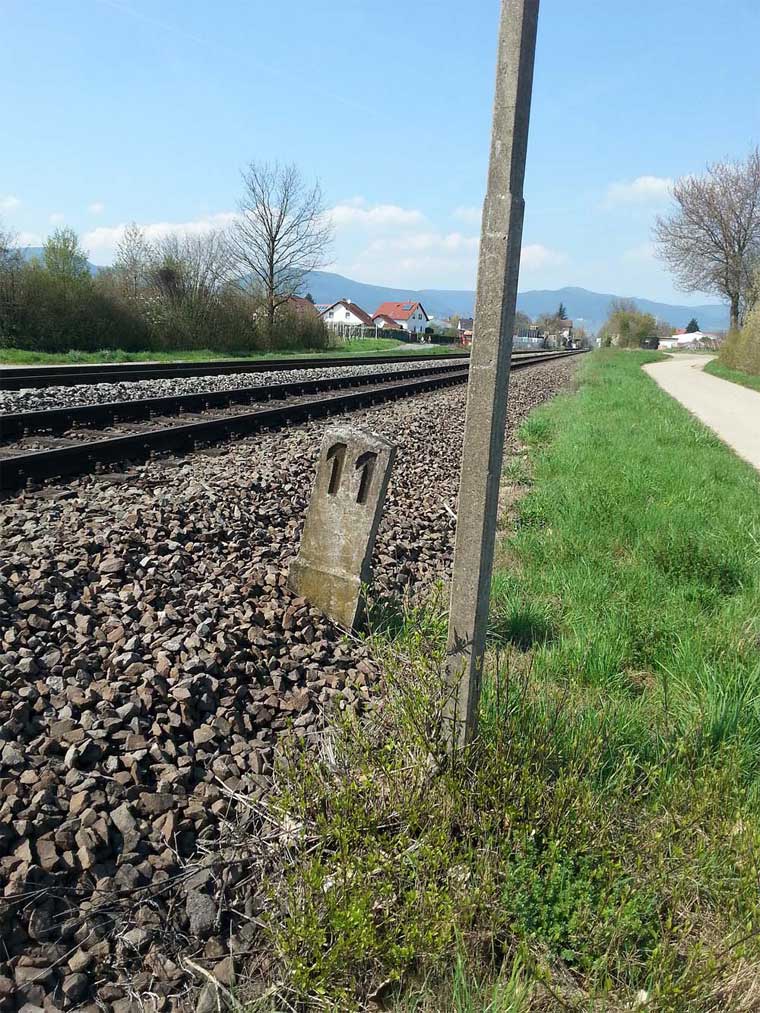 km 1,1 gehört zur Strecke Landau (Pfalz) Hbf 0,0 - Herxheim (b Landau) 10,88