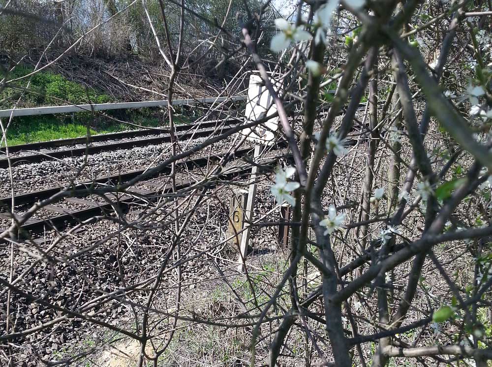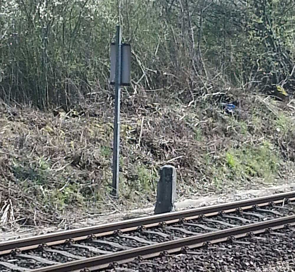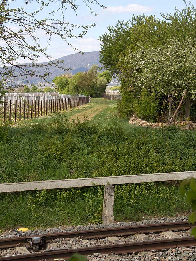 | km 22,8 der Strecke Neustadt Hbf 0,0 - Edenkoben 10,7 - Landau Hbf 22,8 (Pfälzer Oberlandbahn) Spurweite 1000 mm | ||