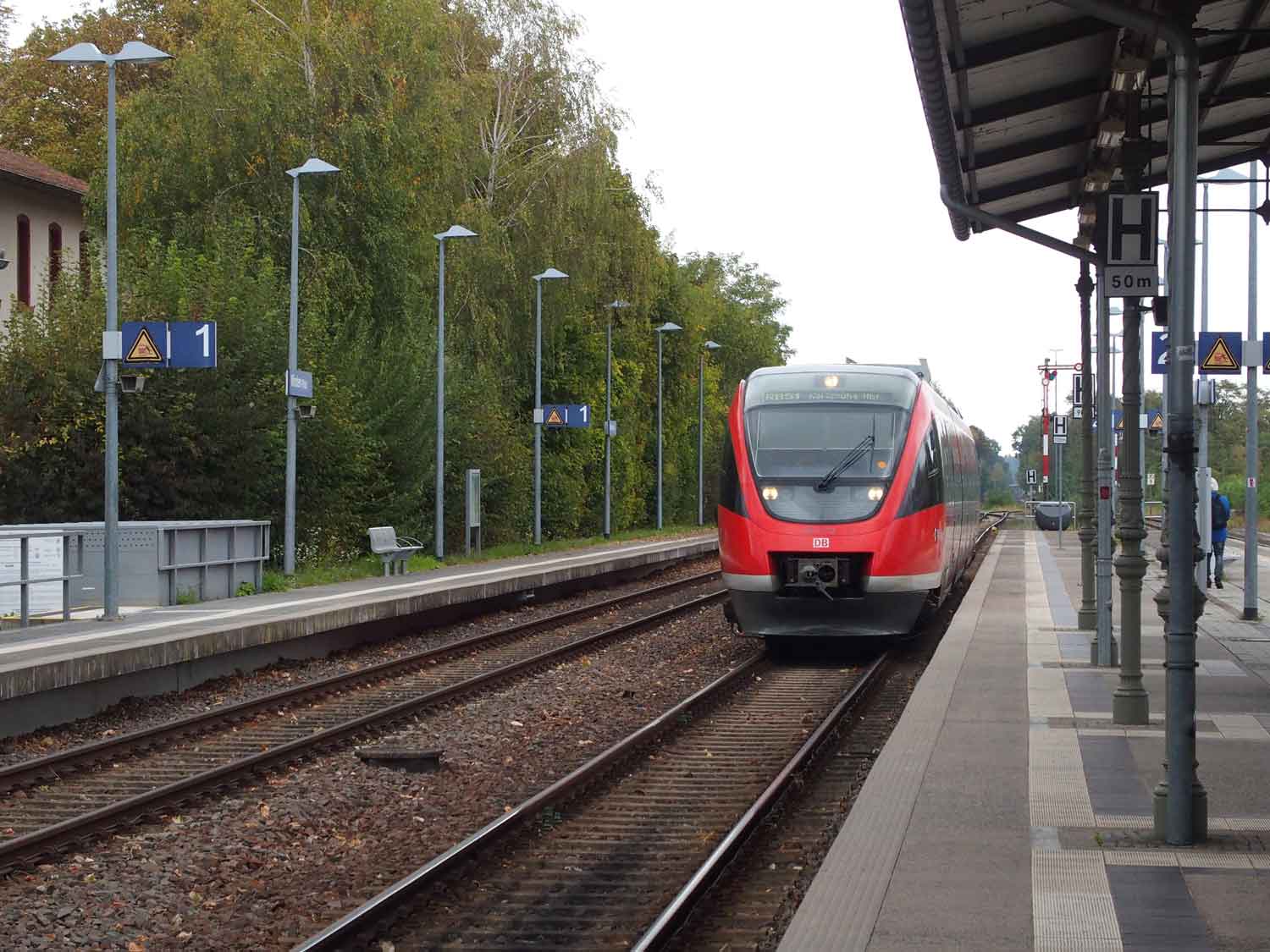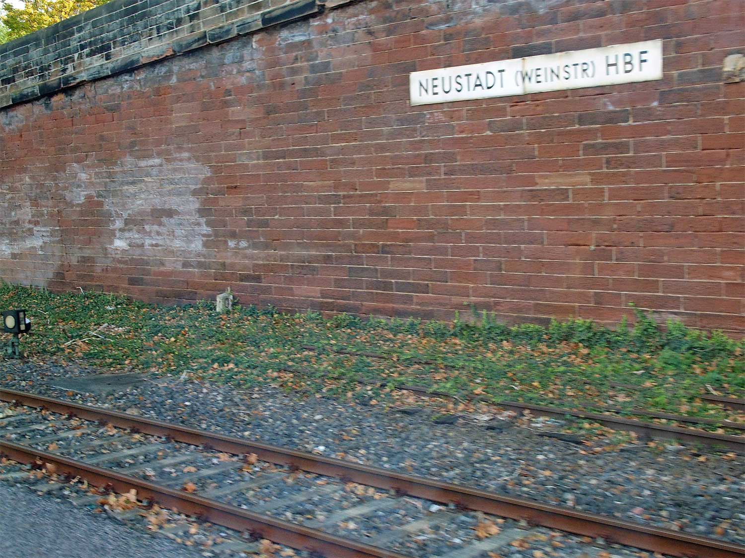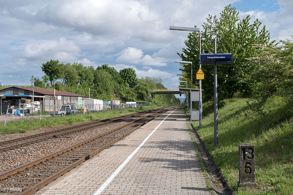 | km -1,77 der Strecke Neustadt (Weinstr) Hbf -1,77 - Bad Dürkheim 13,52 (kommend)/13,51 (gehend) - Grünstadt 28,45 - Monsheim 38,04 (3436/3430) | ||