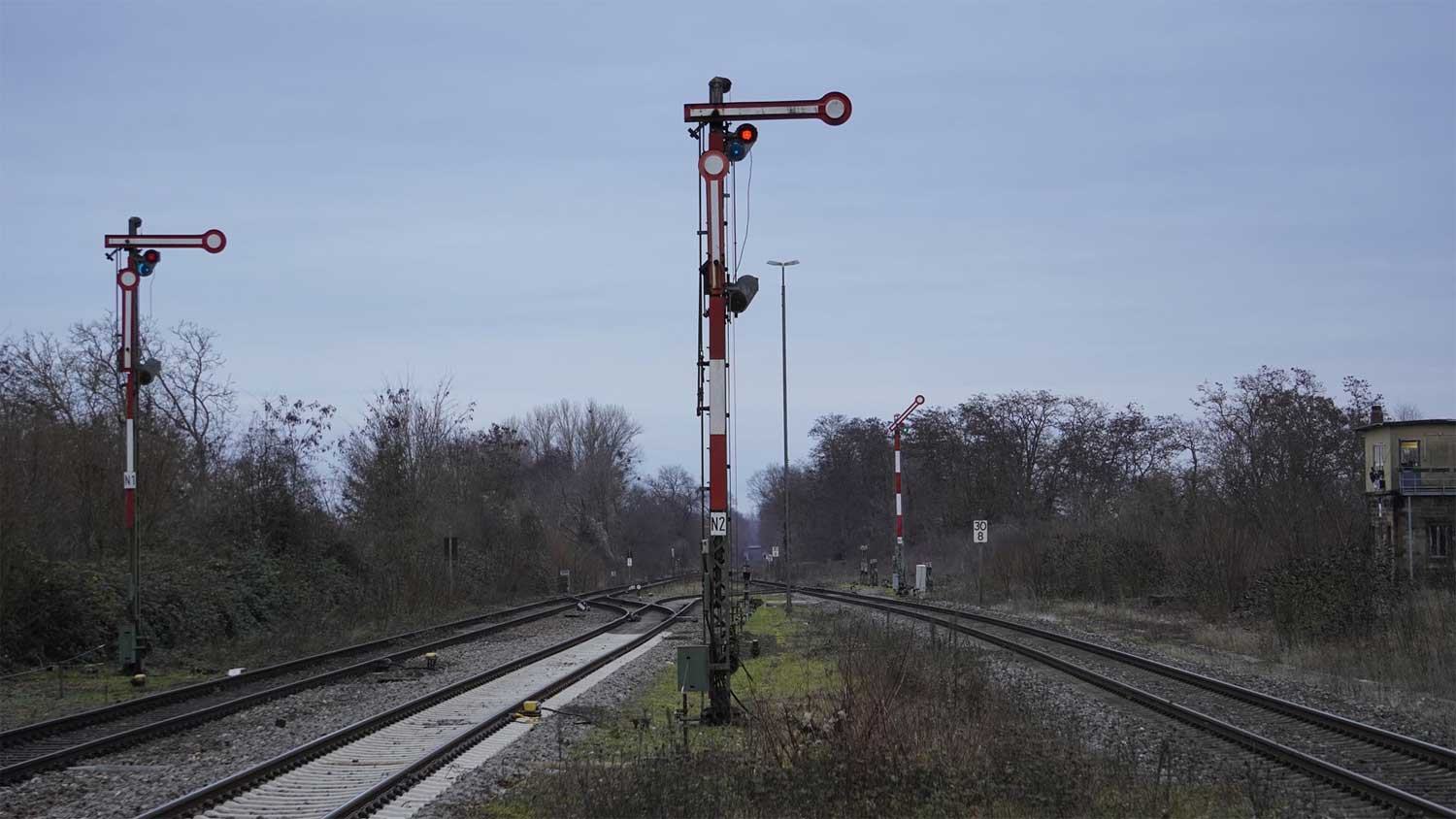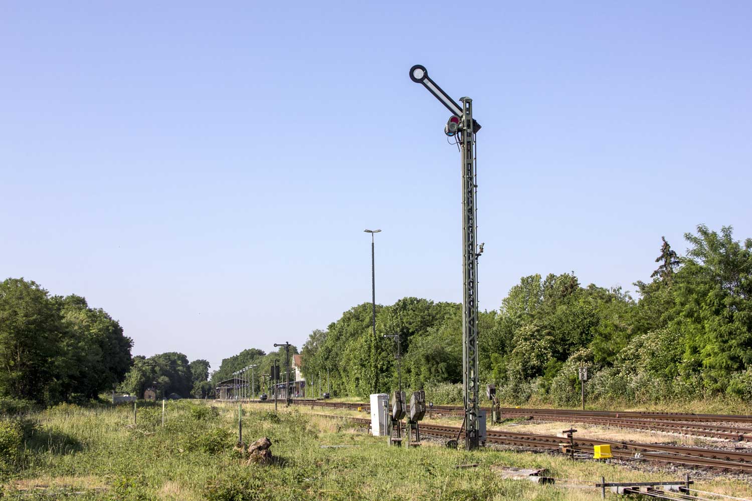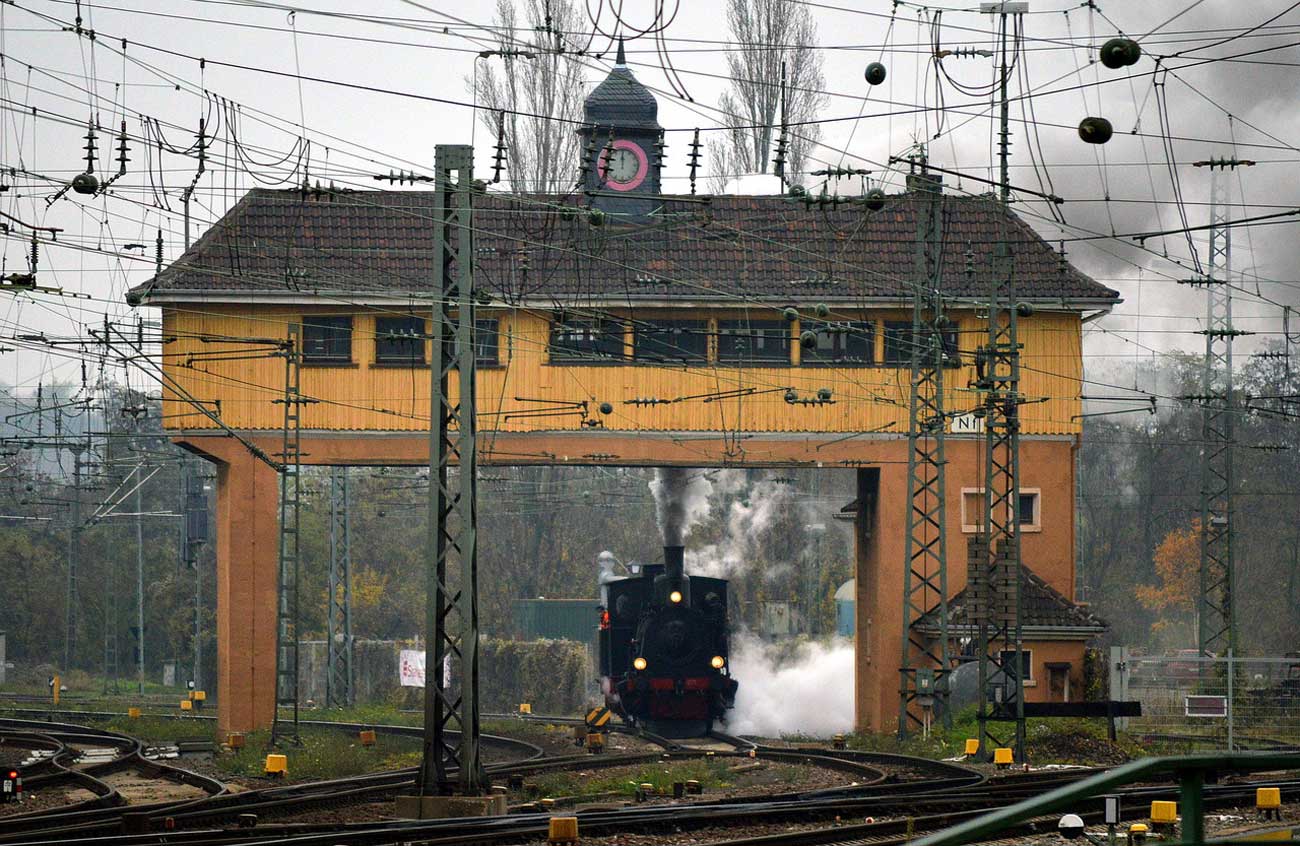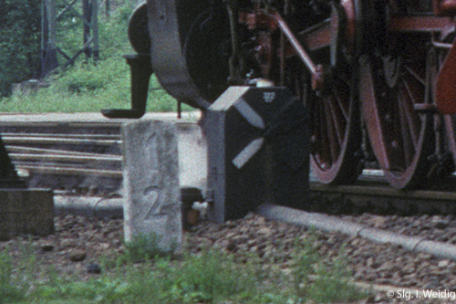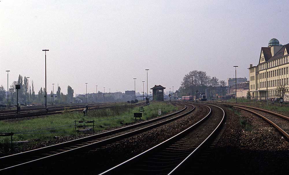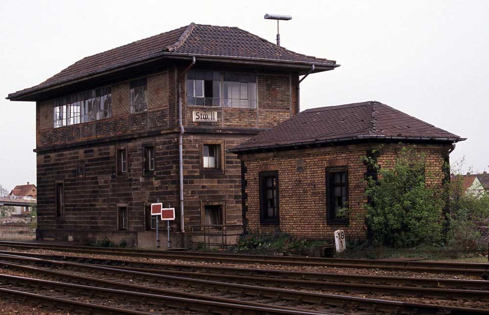 Er stand vor dem ehemaligen Wärterstellwerk in der Rangieranlage.