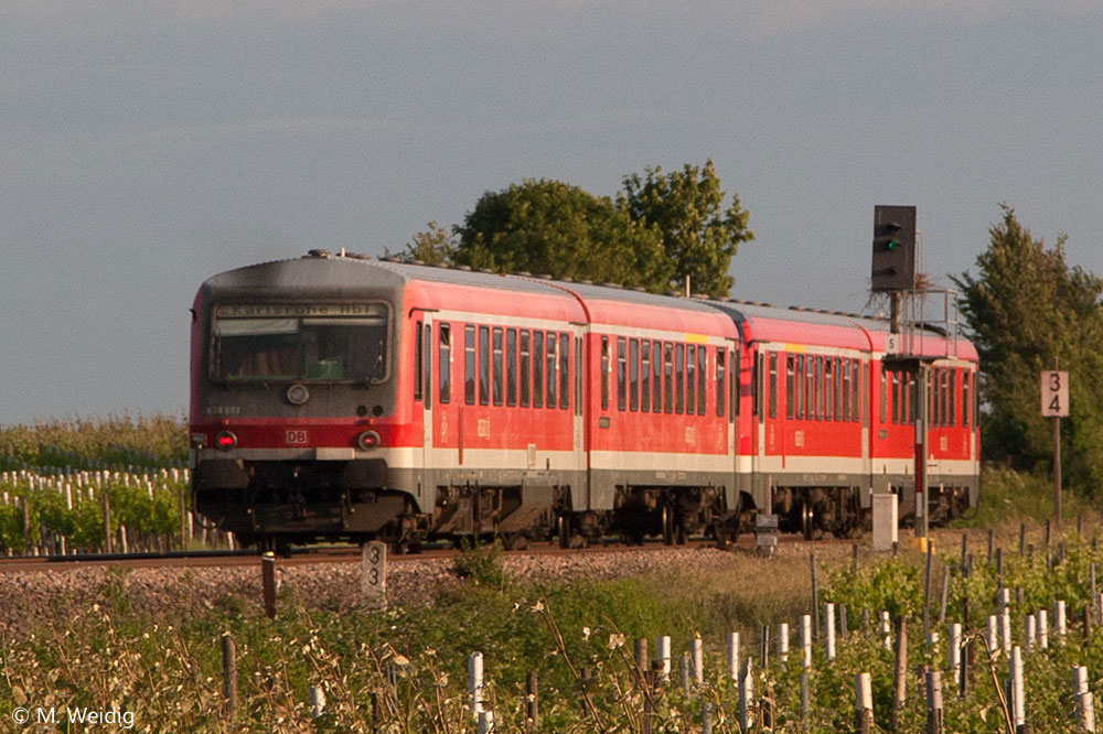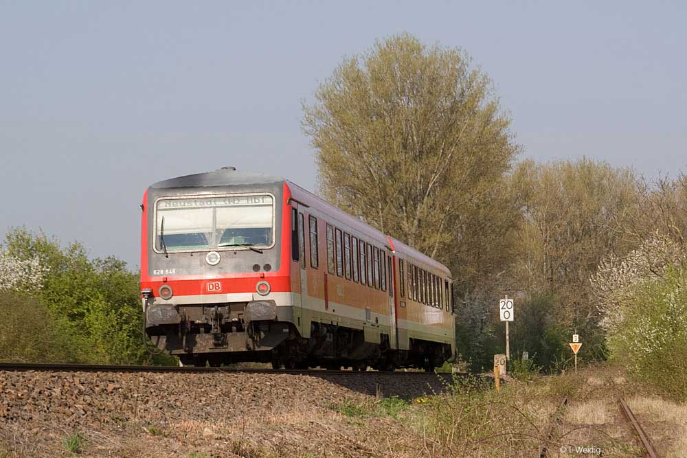 km 25,4 (Stein und Tafel) bei Rohrbach (Pfalz) - 28 306, 628 306 und eine weitere Garnitur 928, 628 als RB 38819