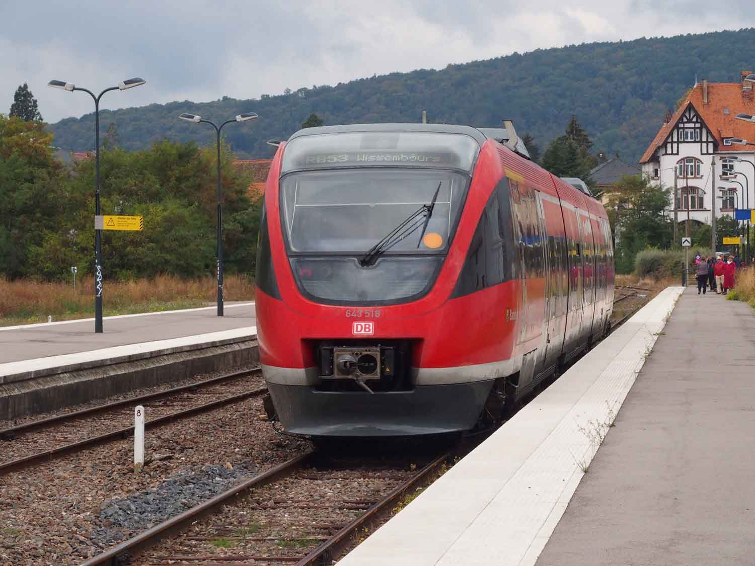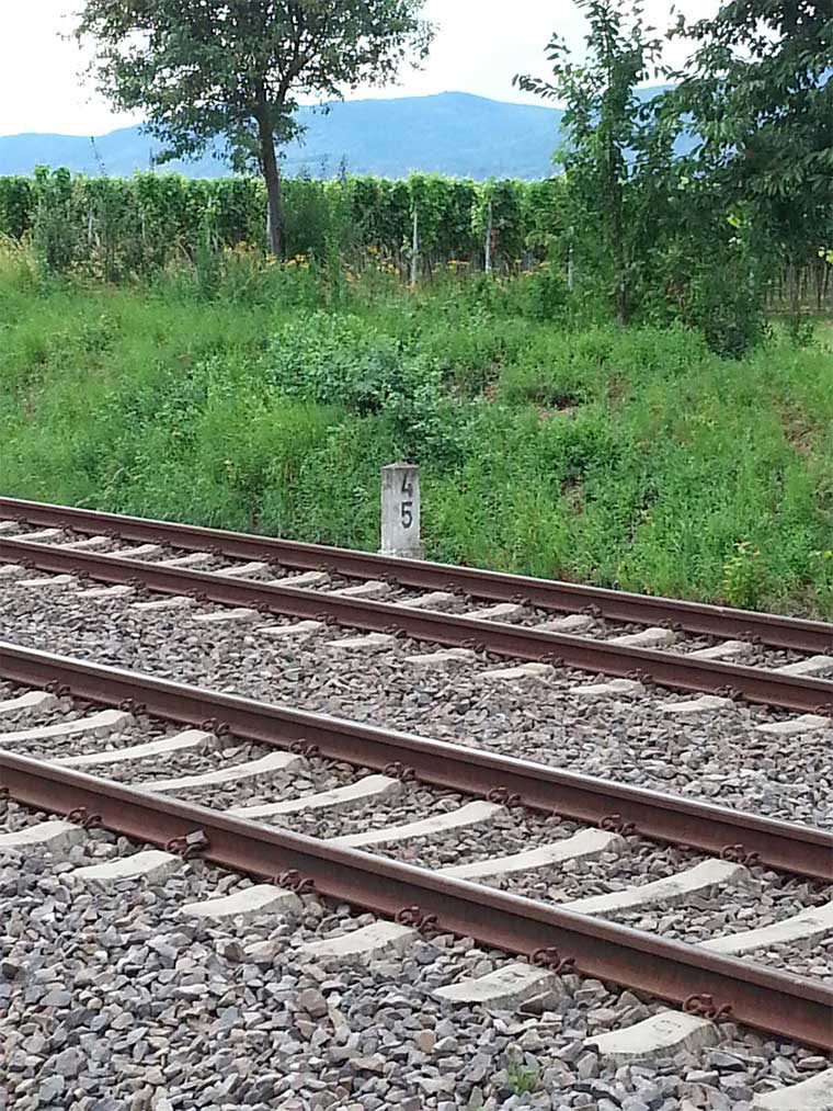 Neustadt (Weinstr) Hbf 0,02 - Landau (Pfalz) Hbf 18,43 - Kapsweyer 41,17 - Grenze Deutschland/Frankreich 44,618 = (km 60,028 - Wissembourg 57,67 - Vendenheim 0,0)