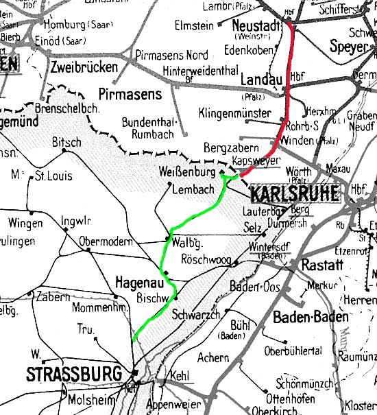 Neustadt (Weinstr) Hbf 0,02 - Landau (Pfalz) Hbf 18,43 - Kapsweyer 41,23 - Grenze Deutschland/Frankreich 44,616 = (km 60,026 - Wissembourg 57,67 - Vendenheim 0,0) (3433)
