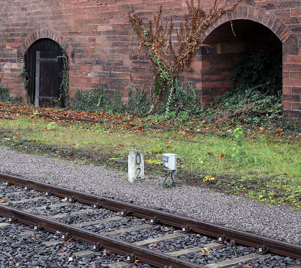 | km 0,0 der Strecke Neustadt Hbf 0,0 - Edenkoben 10,7 - Landau Hbf 22,8 (Pfälzer Oberlandbahn) Spurweite 1000 mm | ||