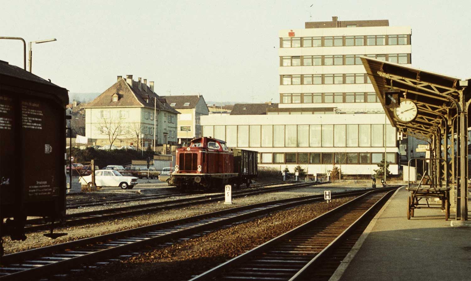 Er stand vor dem ehemaligen Wärterstellwerk in der Rangieranlage.