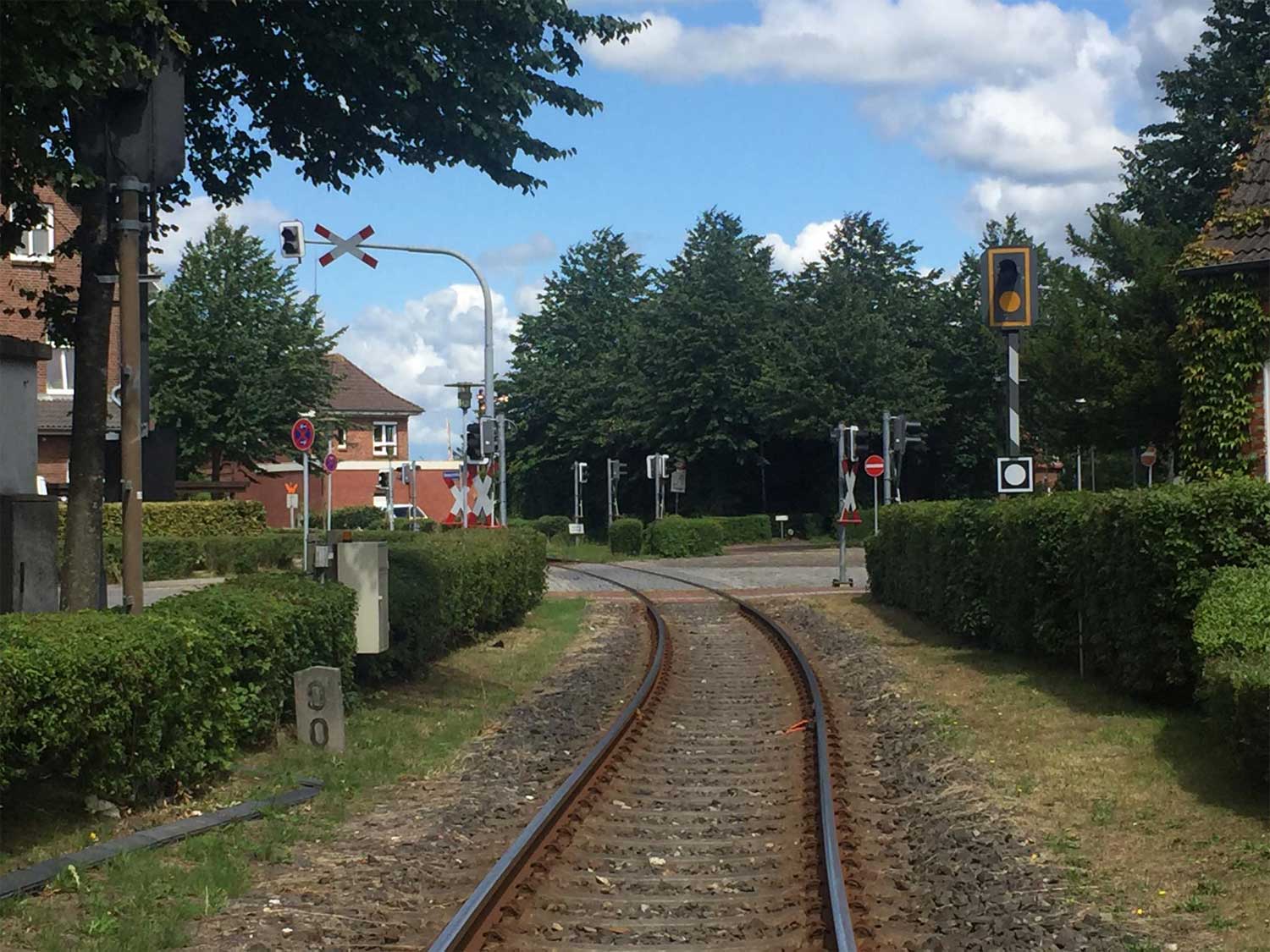 | km 162,00 der Strecke Niebüll 162,00 - Süderlügum 171,40 - Grenze Deutschland/Dänemark 175,29= [km 67,9 - Tønder 64,0 - Bramming 0,0] (1201) | ||