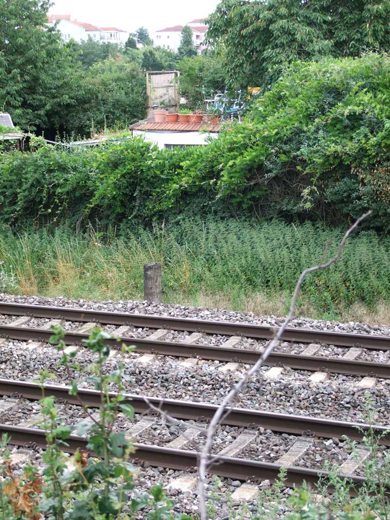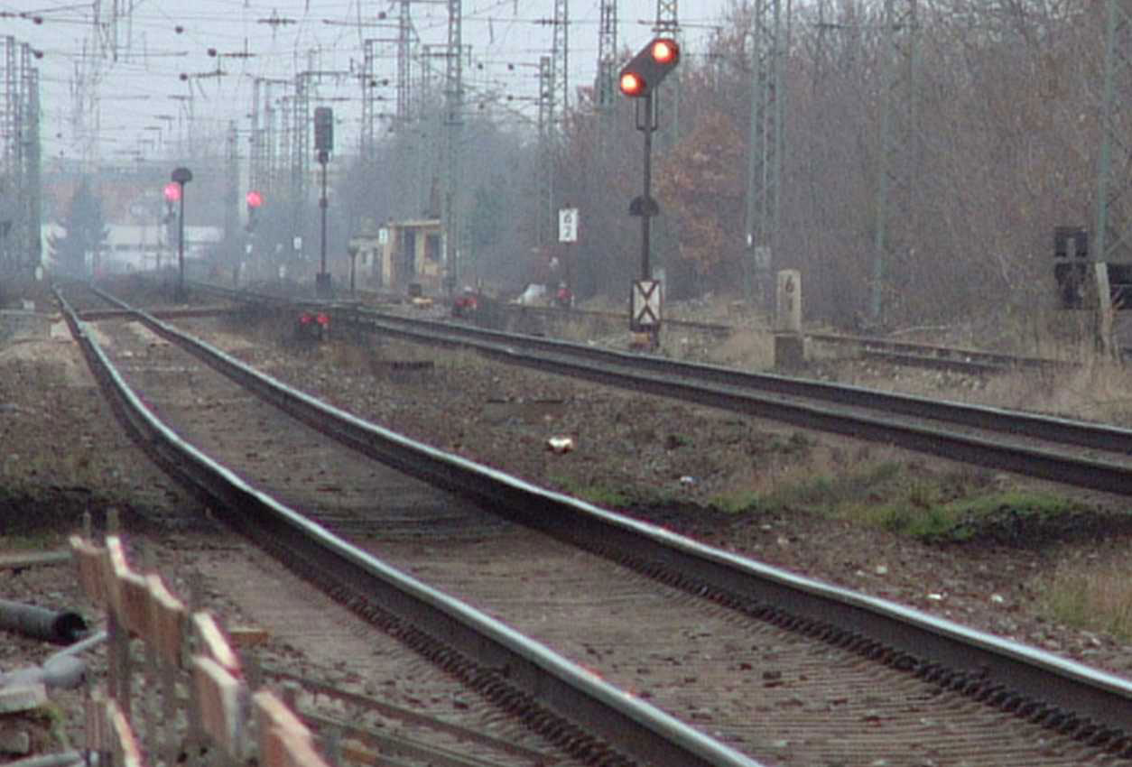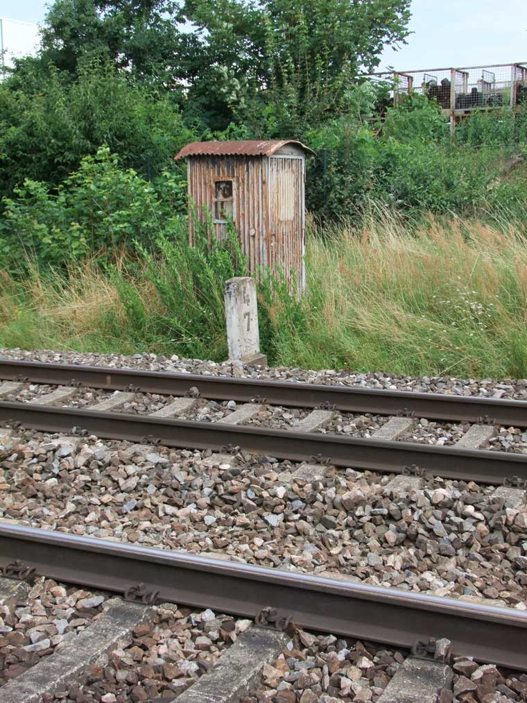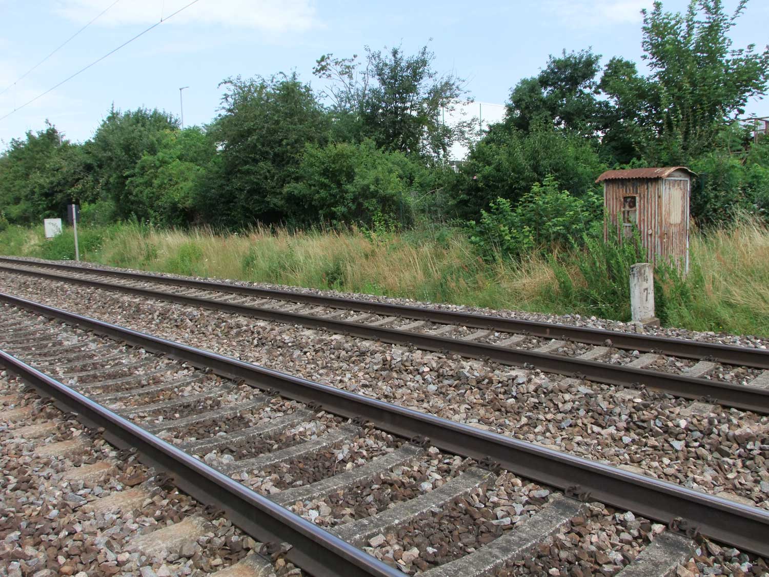 Rechts ein Bahnhofsgleis, früher die Strecke