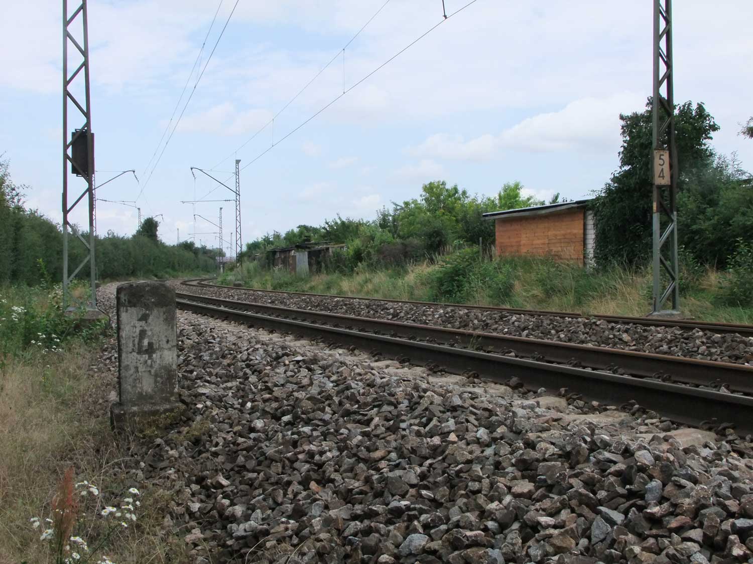 km 5,4 (Stein und tafel) zwischen Nürnberg Rbf und Nürnberg Großmarkt - Blick Richtung Fürth