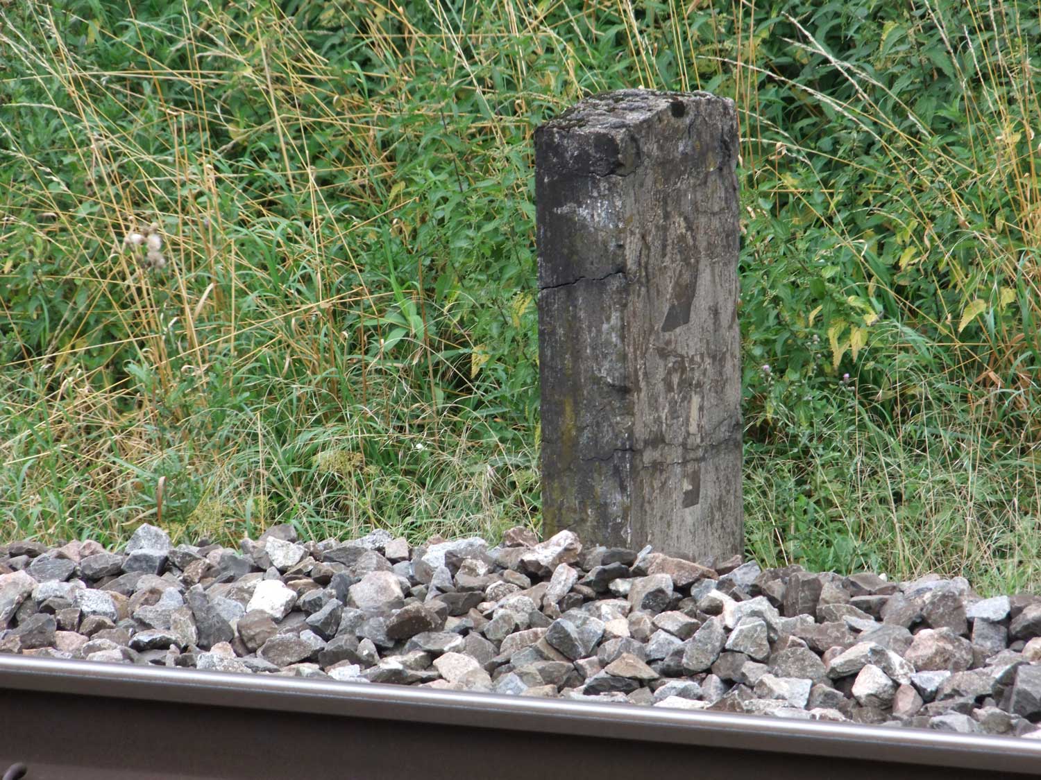 km 3,5 (Stein versteckt) und km 3,6 (Tafel) zwischen Nürnberg Rbf und Nürnberg Großmarkt