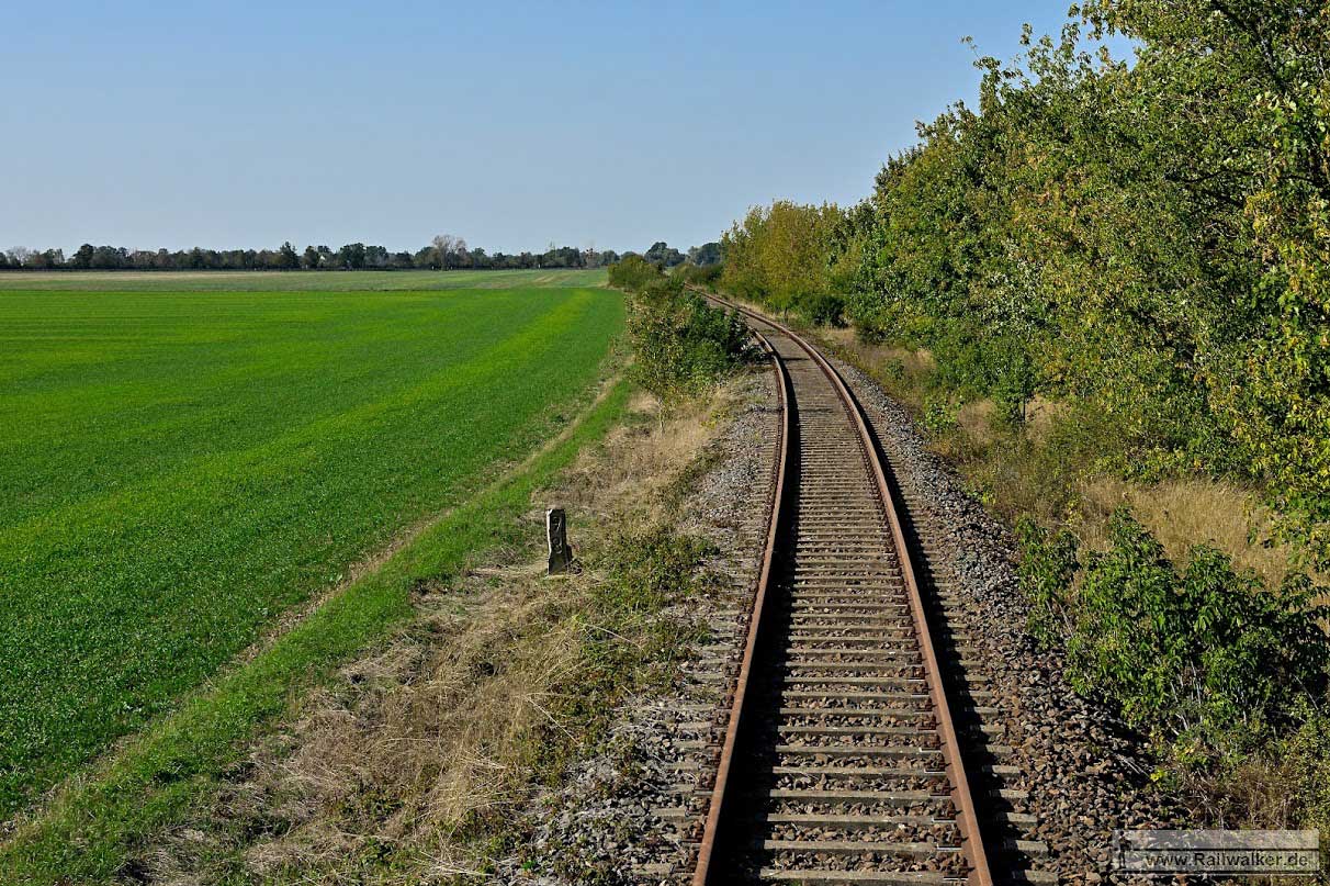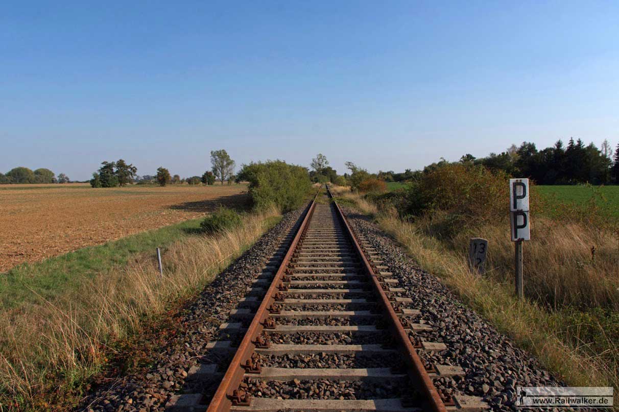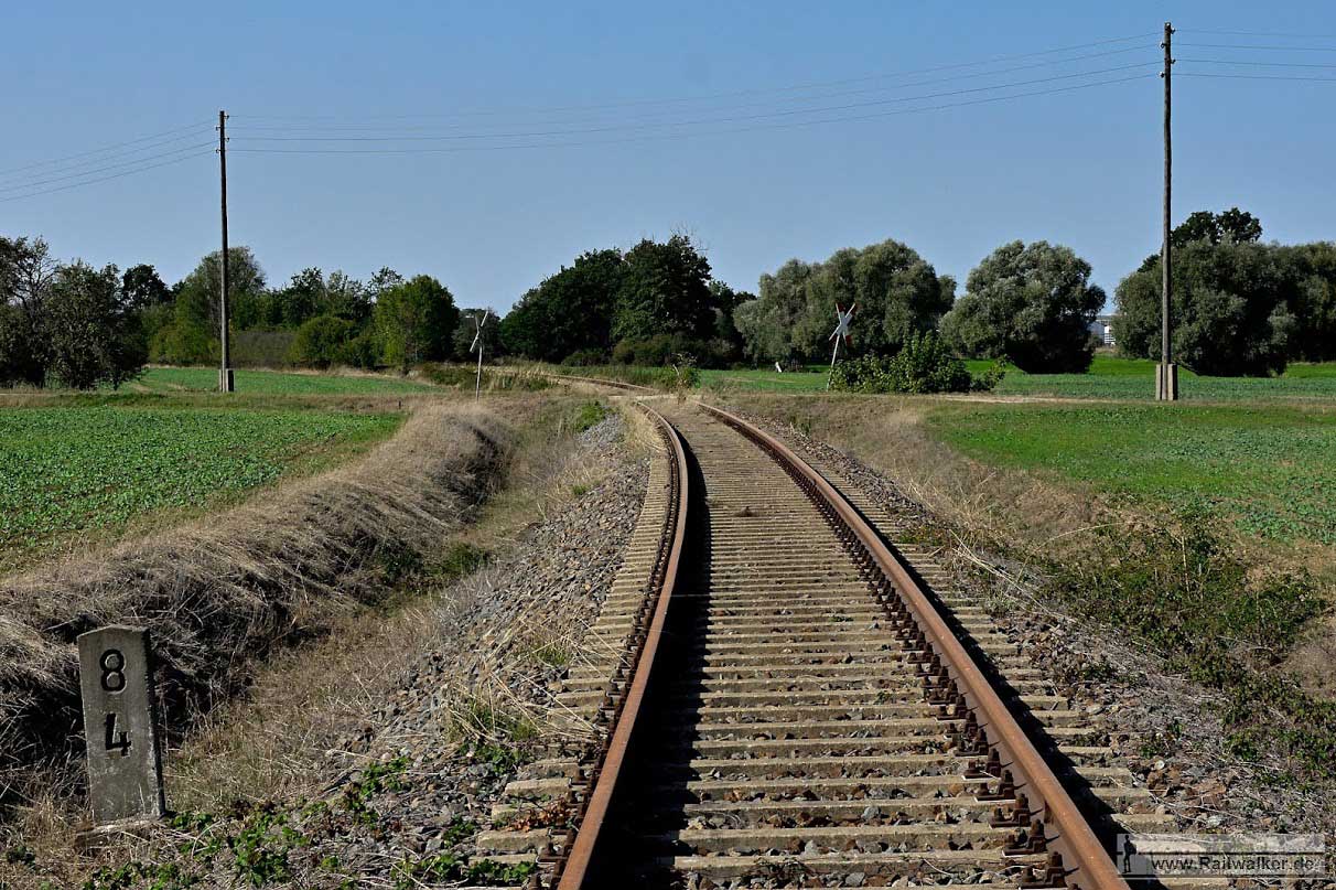 etwa bei km 0,0 (linkes Gleis) in Pratau - Blick Richtung Torgau