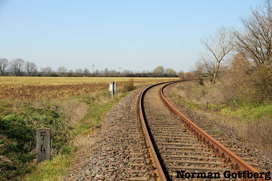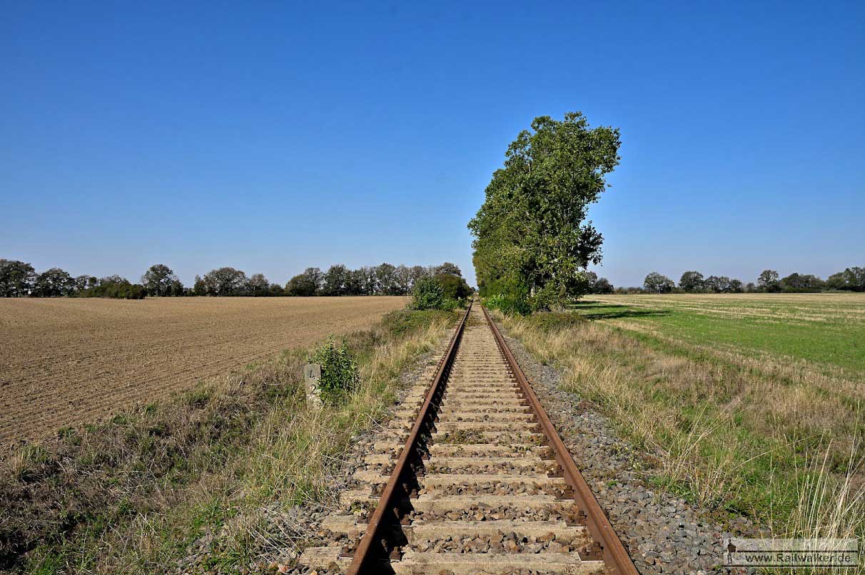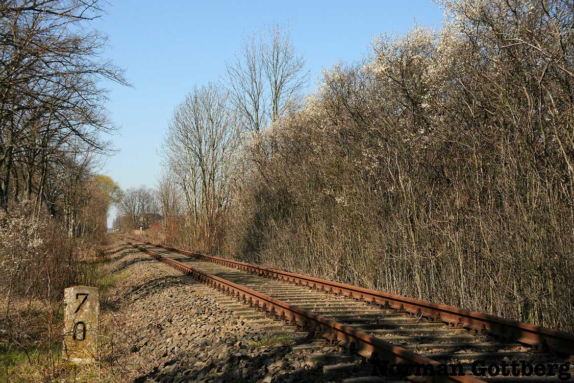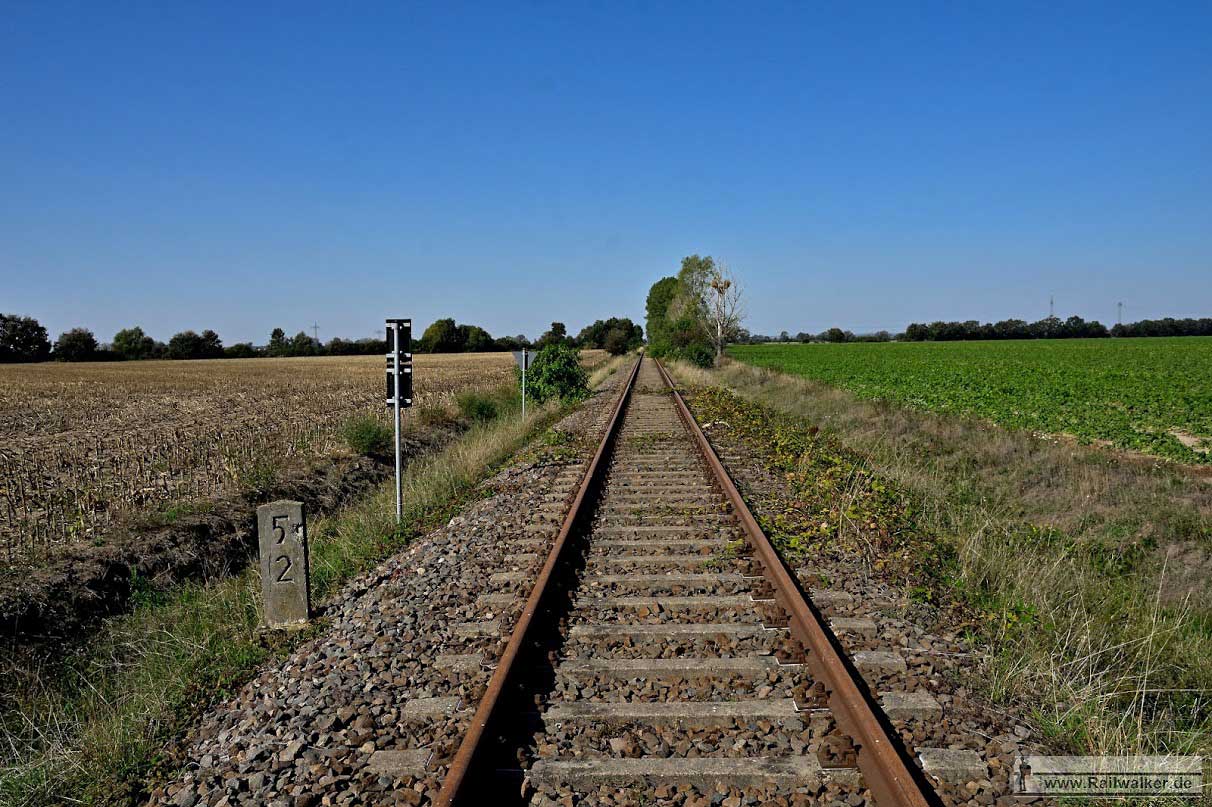 etwa bei km 0,0 (linkes Gleis) in Pratau - Blick Richtung Torgau