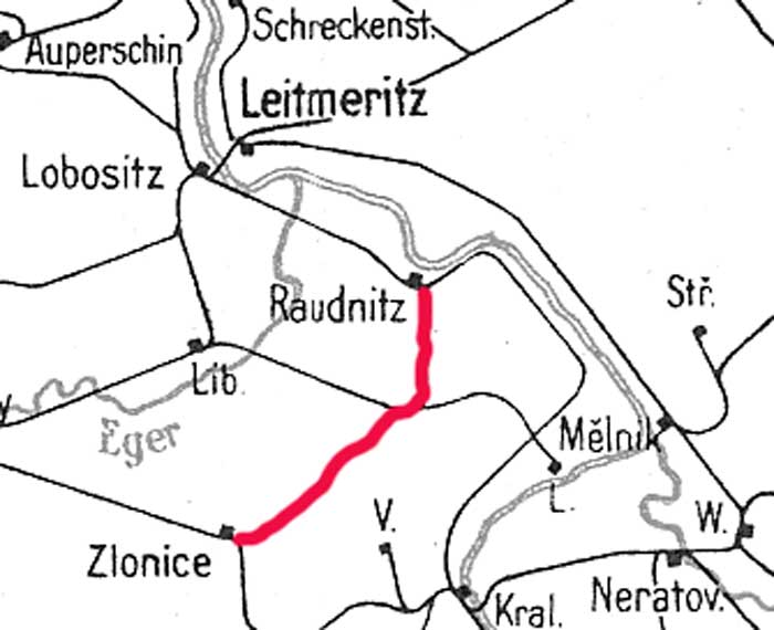 Raudnitz (Elbe) / Roudnice nad Labem 0,0 - Straschkow / Strakov 14,520 - Slonitz / Zlonice 32,665