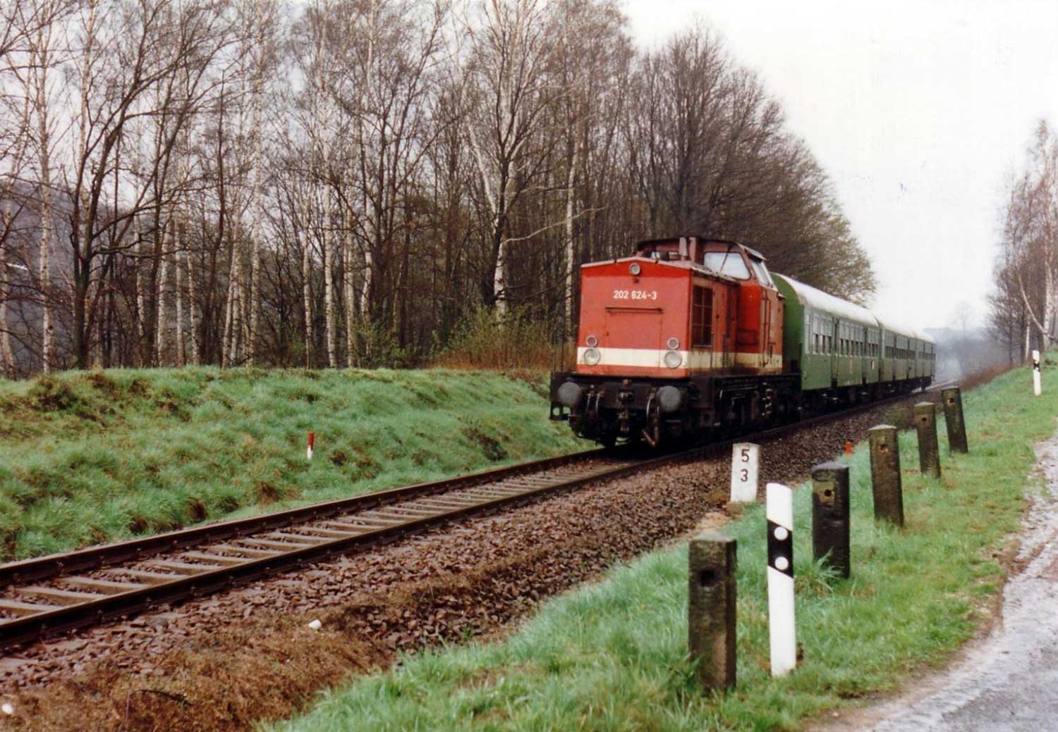 km 6,3 zwischen Rochlitz (Sachs) und Narsdorf - 50 3673 Foto: Jörg Lempe, September 1984