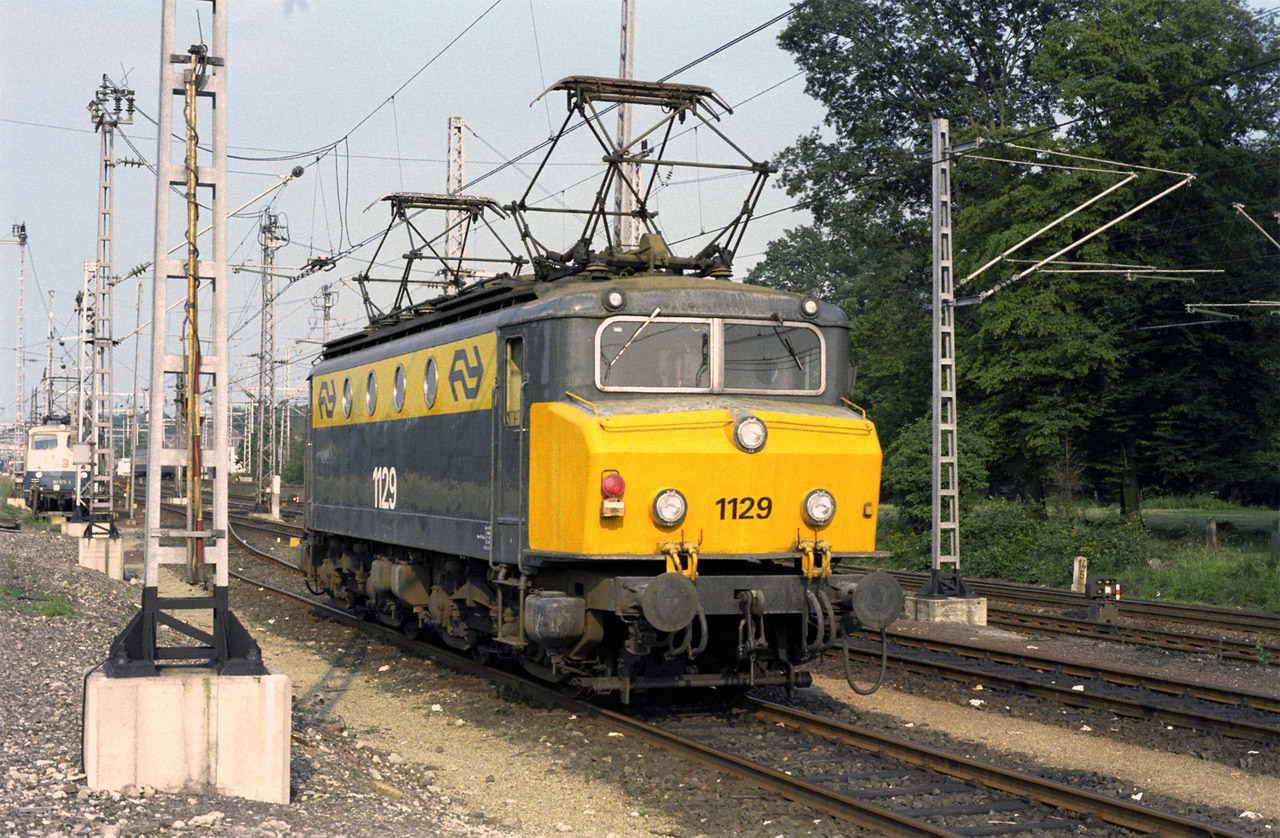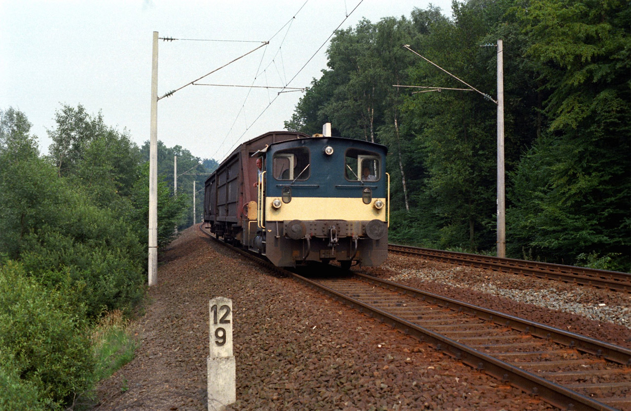 Links das Abstellgleis für niederländische Triebfahrzeuge (1829, 1837 und 1831)