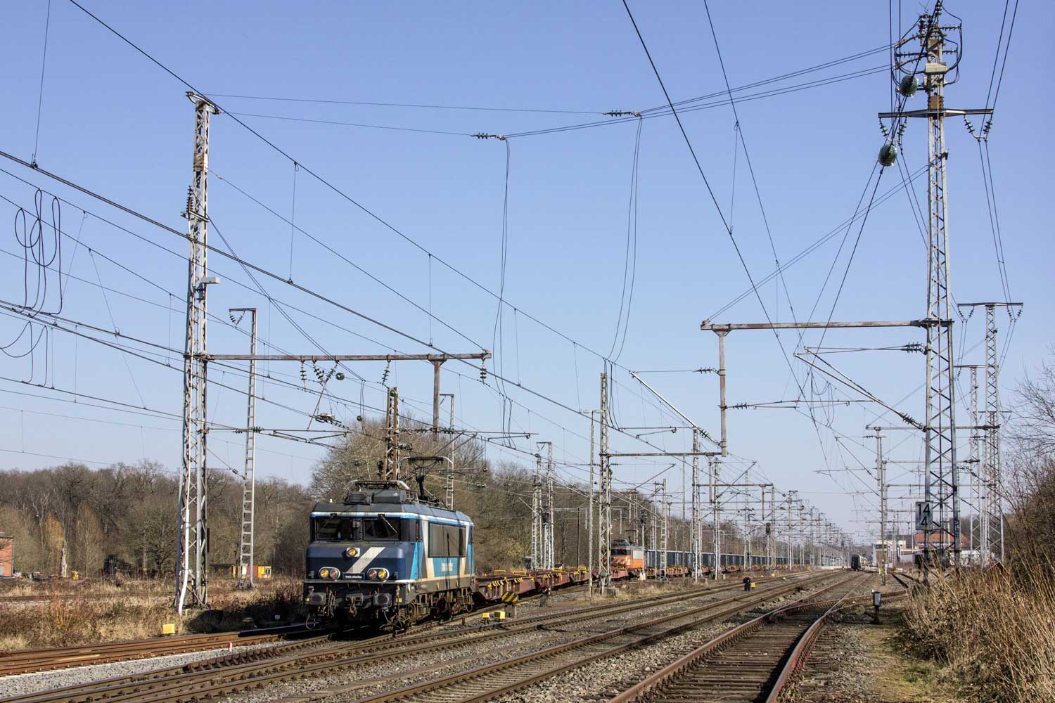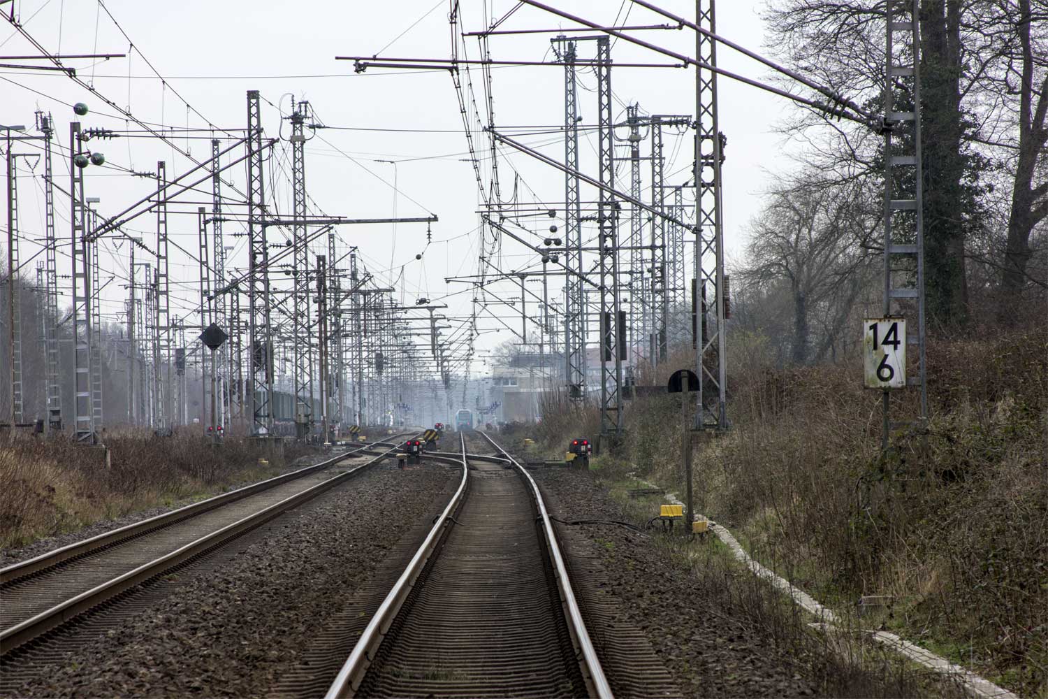 Man beachte auch den Bauartwechsel in der Oberleitungsanlage