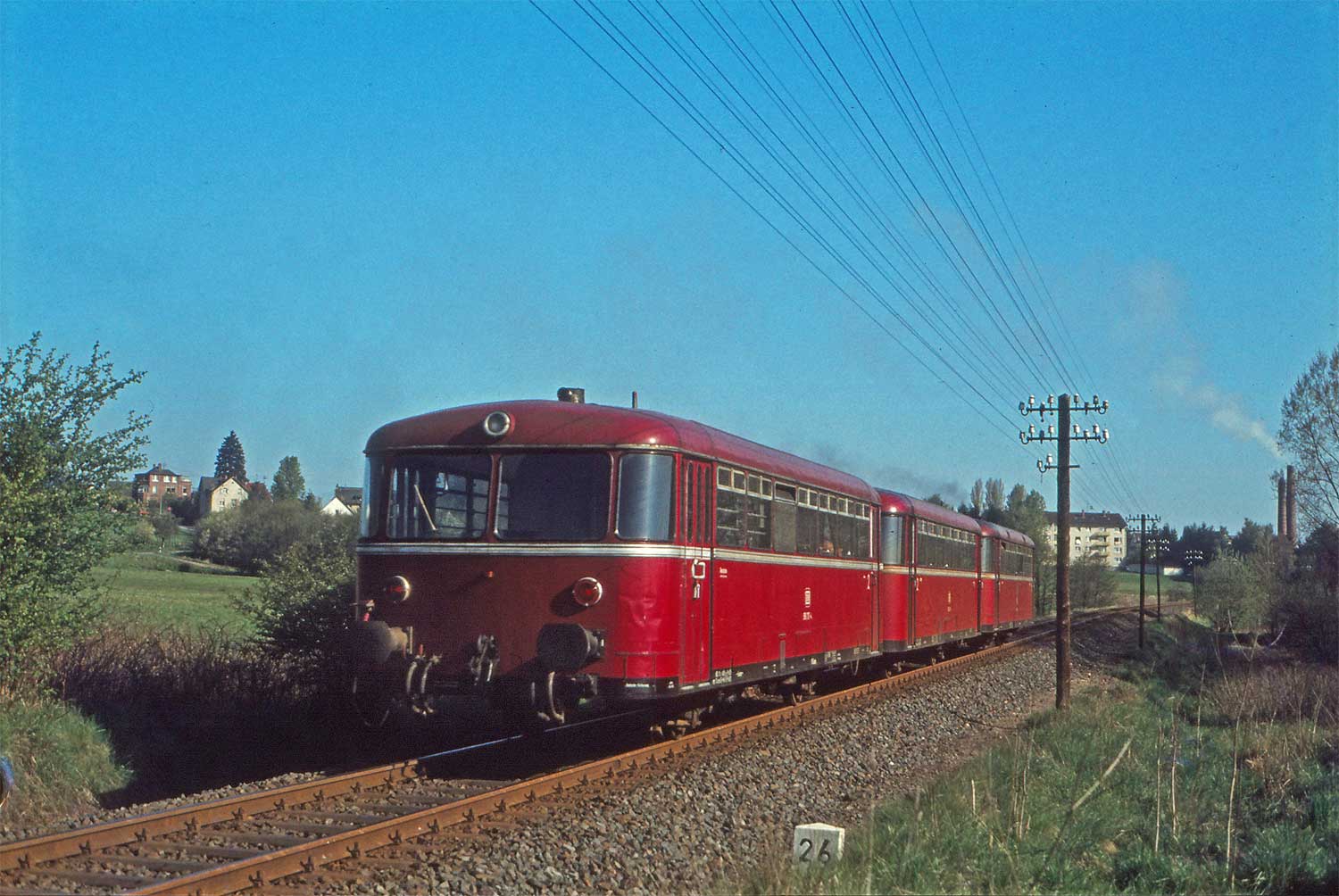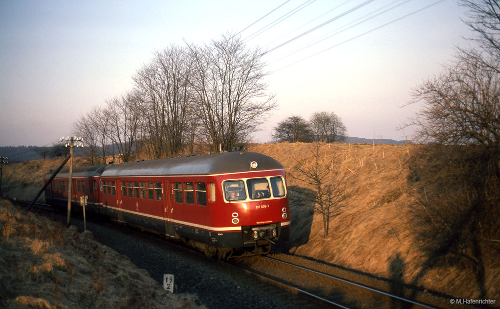 817 608/517 008 als N 6834 (Limburg - Siershahn) am km 19,2 zwischen Goldhausen und Montabaur im Jahr 1982