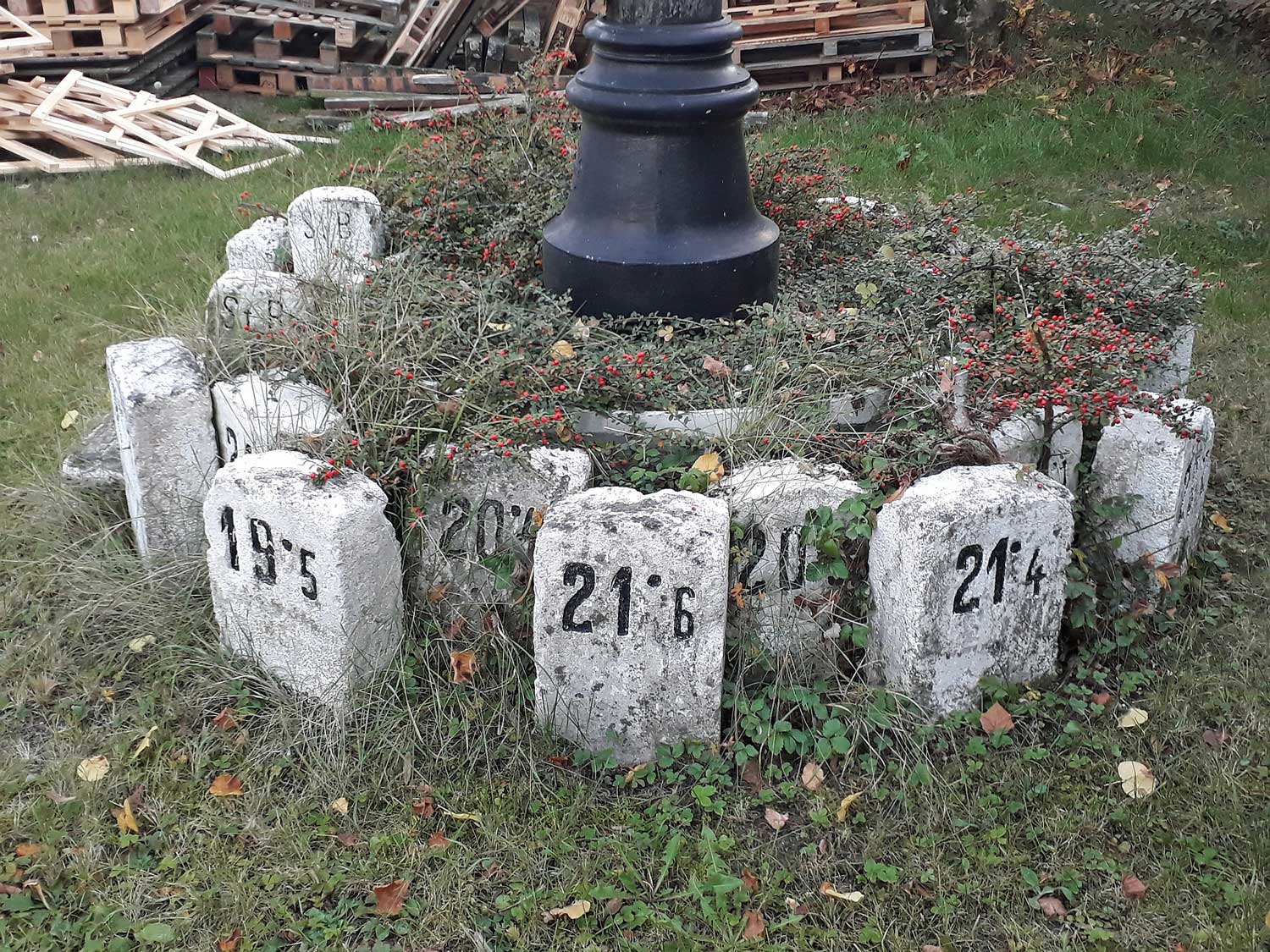 Gedenktafel in Grünburg mit Kilometersteinen Foto: Markus