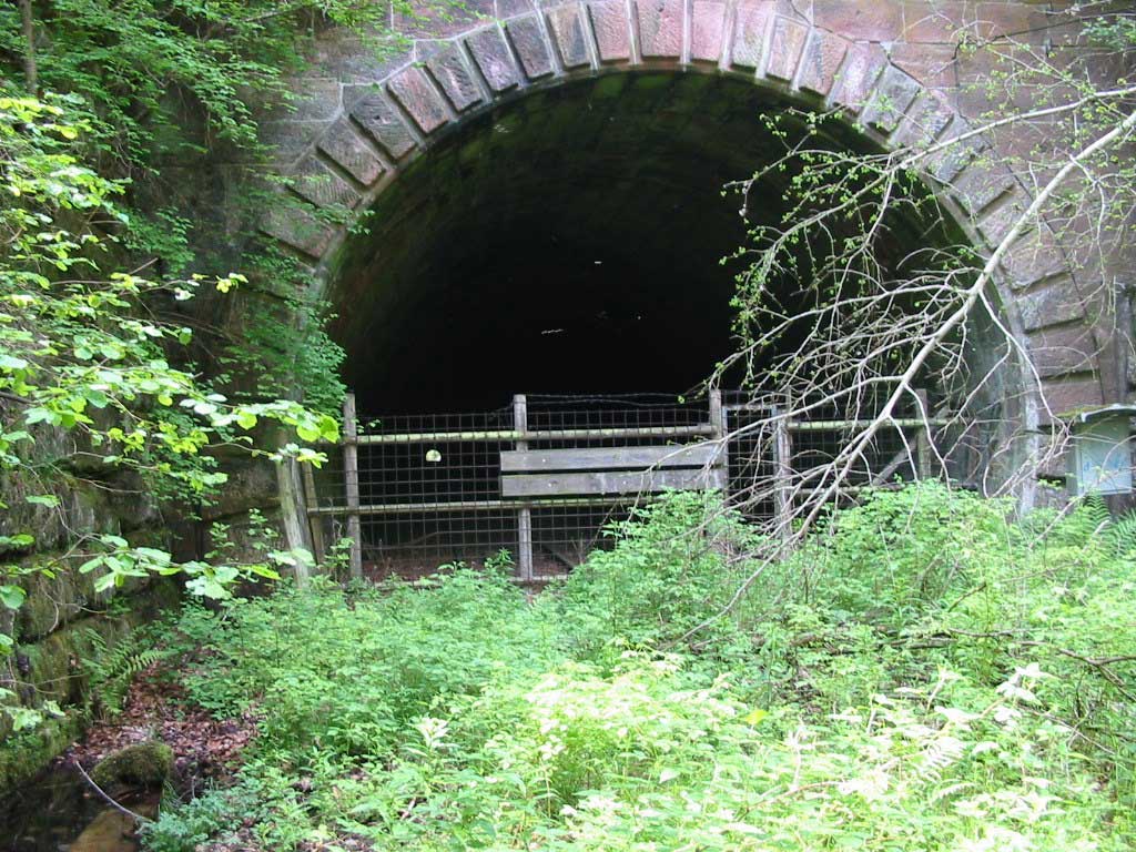 Hier gibt es eine vermutlich weltweit einmalige Tunneltrennwand aus Betonfertigteilen. Der Tunnel war um 1870 zweigleisig gebaut, das zweite Gleis aber nie verlegt worden.