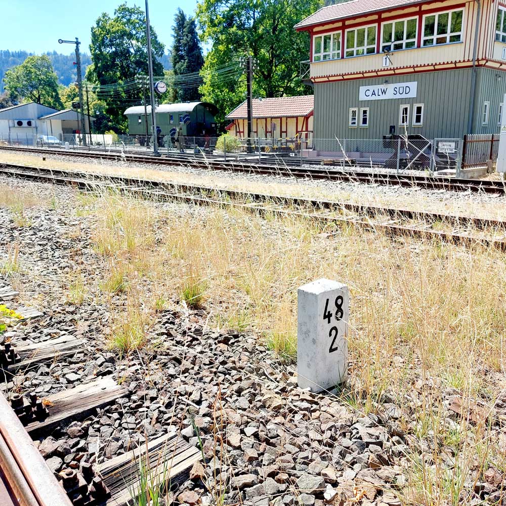| Calw | 48,52 | km 26,77 der Strecke Pforzheim 0,10 - CaIw 26,77 - Hochdorf (b Horb) 56,26 |