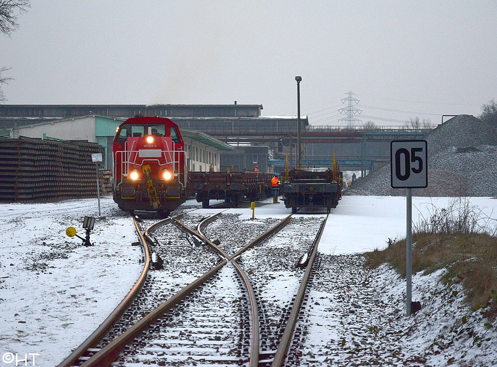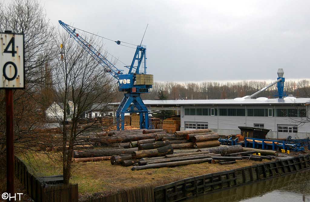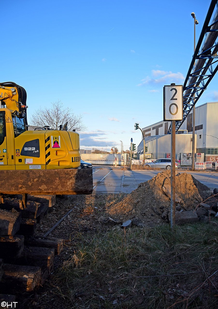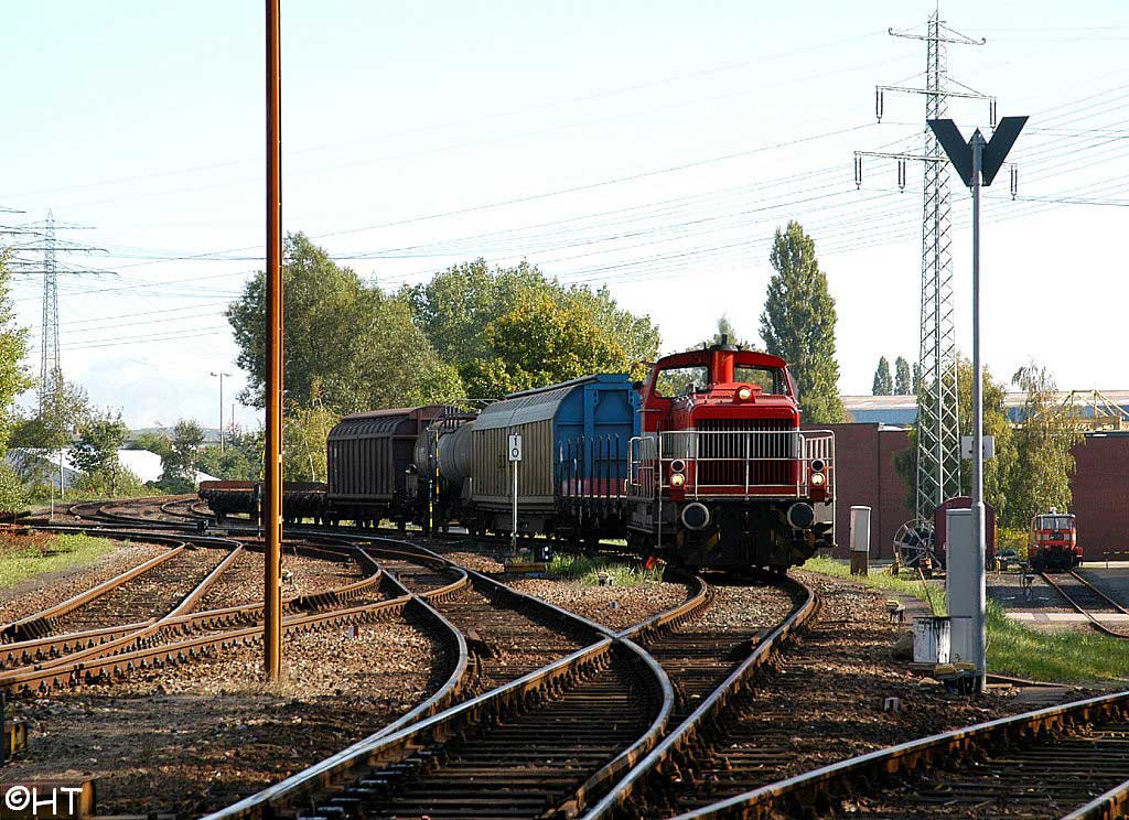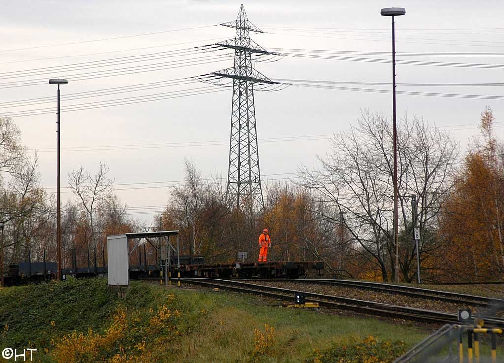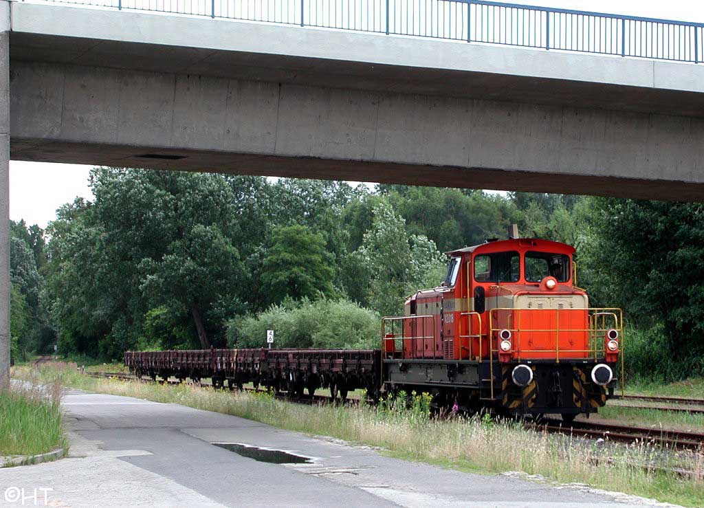 km 2,0 befindet sich inzwischen auf dem Gelände von Koops, rechts von den Waggons, das Gleistor ist vorverlegt worden, die Gleise zum Teil neu verlegt worden.