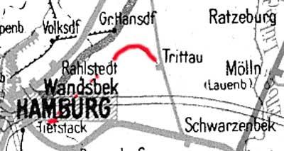 Hinter dem Wall befand sich die Strecke Trittau 0,0 - Glinde 22,0