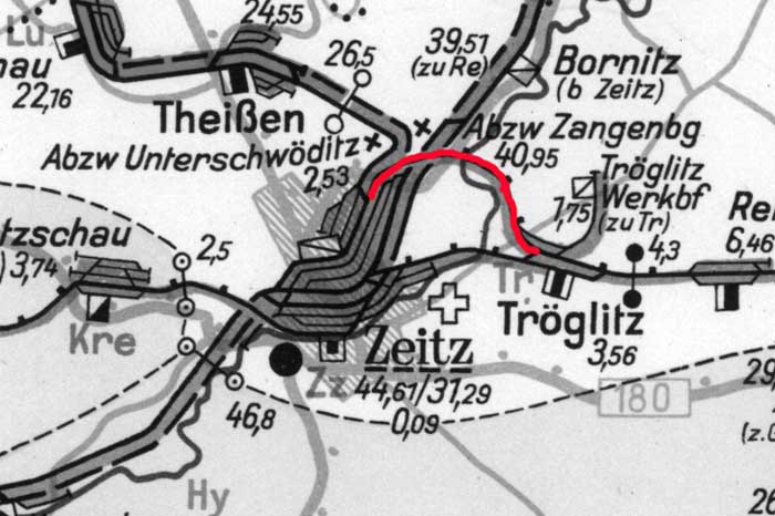 Links die Strecke Zeitz - Altenburg (ZA)