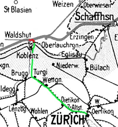 Waldshut -0,39 - Grenze Deutschland/Schweiz km 1,367 = [km 42,70 - Koblenz 41,13 - Zürich HB 0,0]