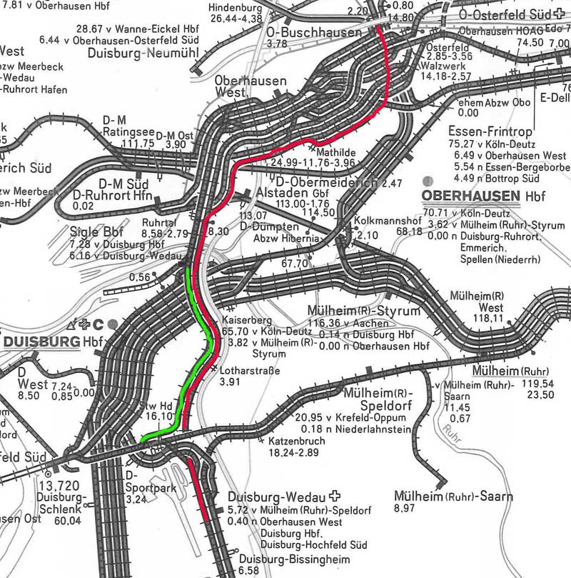 Duisburg-Wedau 0,40 - Abzw. Oberbaurat Sigle 6,09 - Abzw. Mathilde 11,82 - Oberhausen Hbf, Abzw Obn14,0