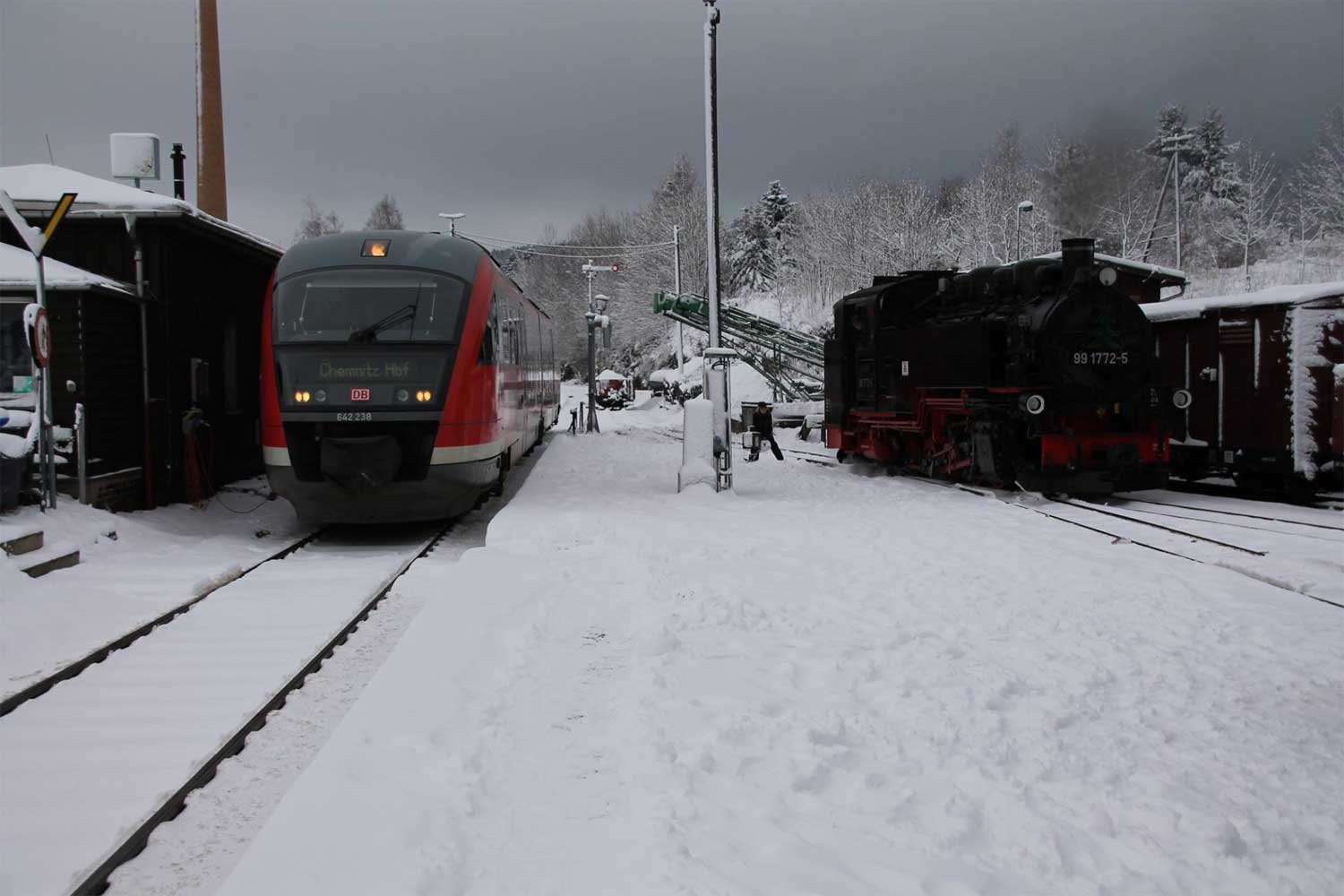 km 10,4 (zugeschneit) in Cranzahl - 642 238 und 99 1772