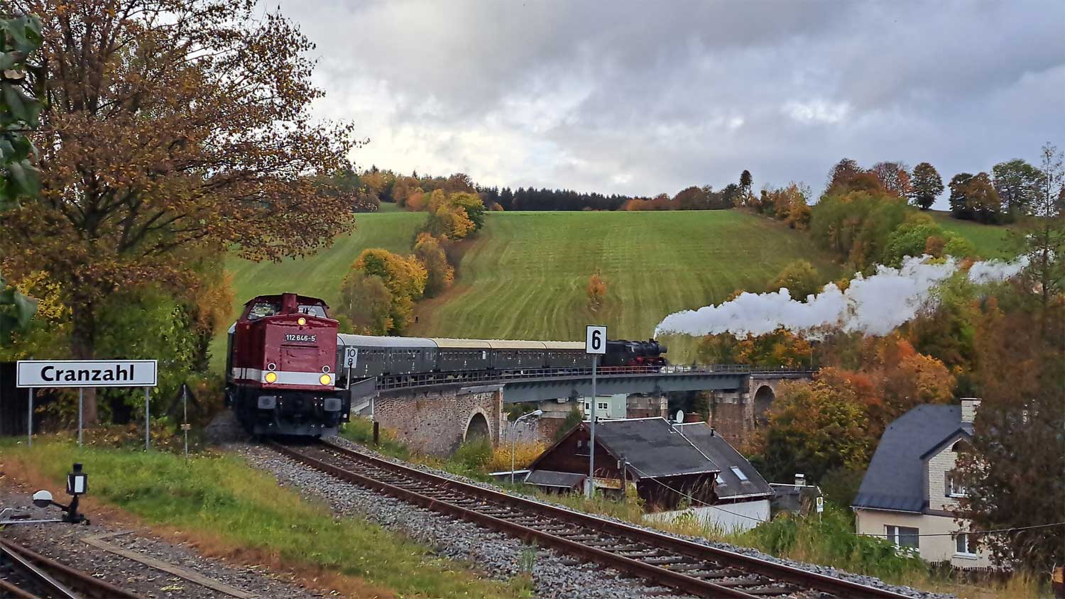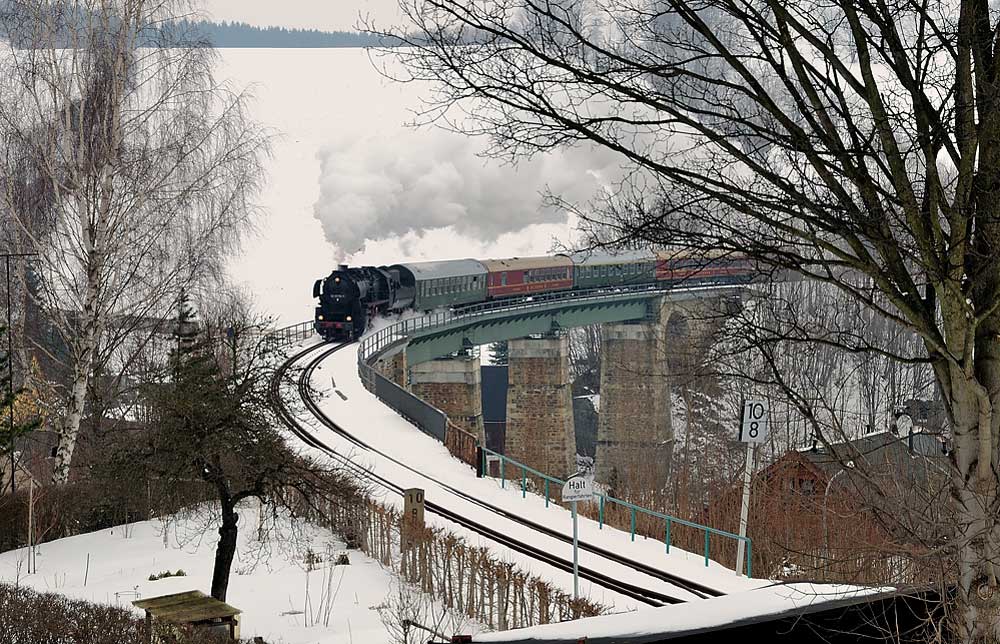 km 10,8 - Viadukt bei Cranzahl - 52 8079 mit einem Sonderzug