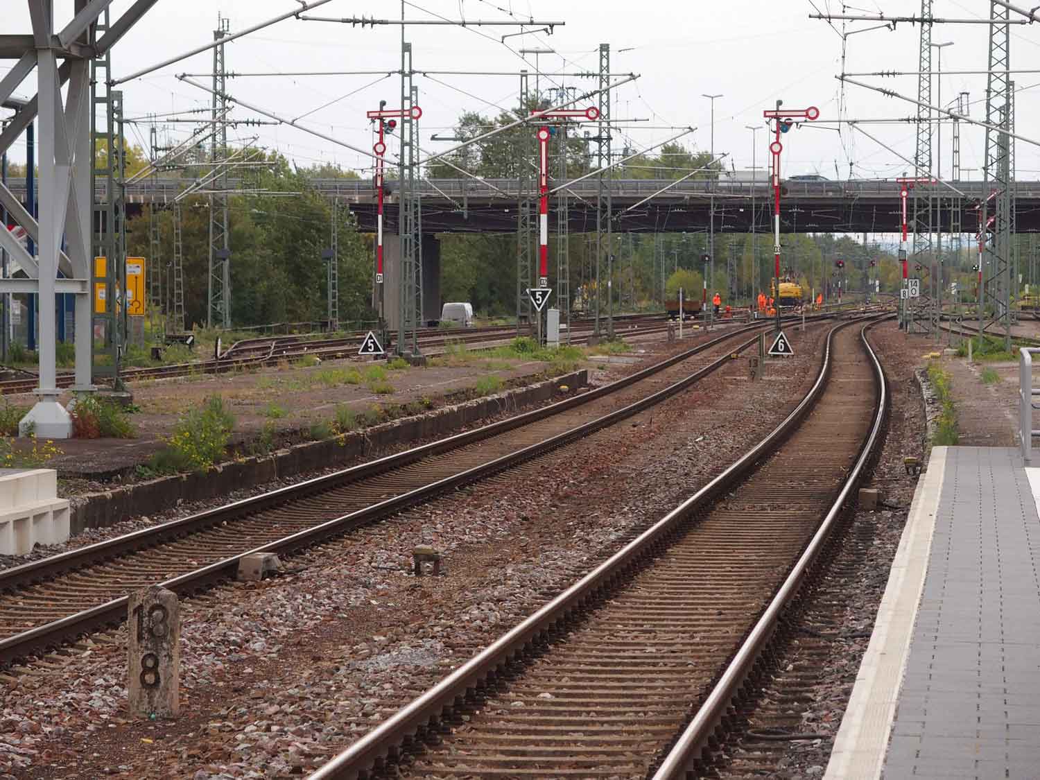 Links das Gleis nach Karlsruhe Hafen
