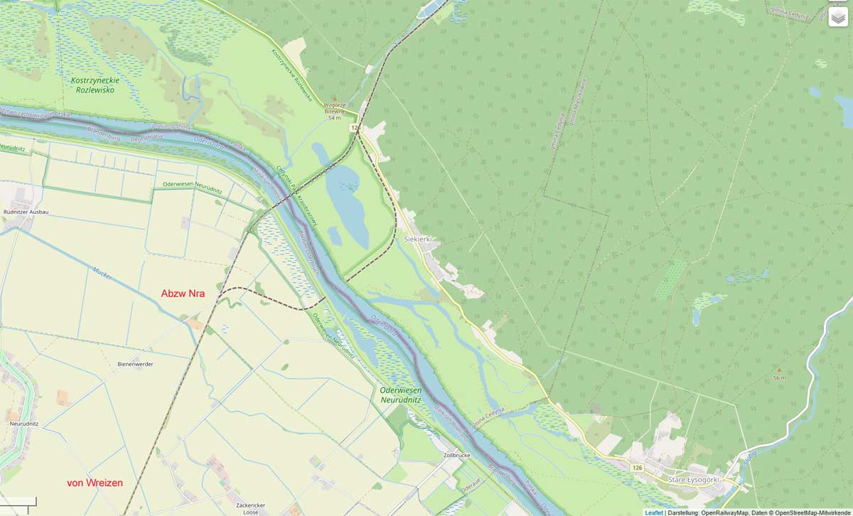 zwischen km 1,2 und km 1,3 der militärische Umgehungsstrecke an der Oder