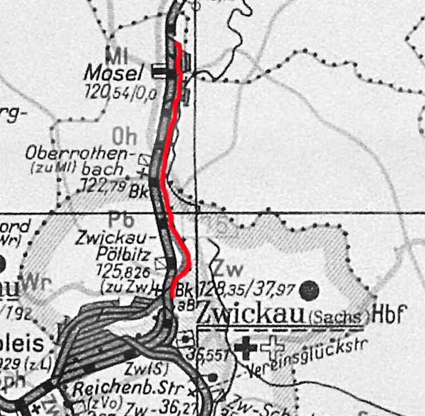 6646 0,469 9,133 Zwickau (Sachs) Hbf, W 41, km 0,469 - Mosel, W 3, km 9,133 (6646 G-Bahn)