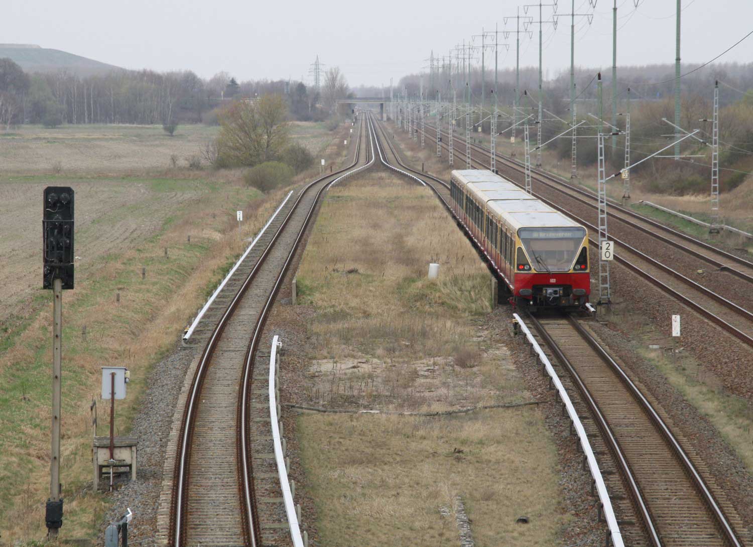 Neben den beiden S-Bahngleisen die Strecke Hohen Neuendorf (b Berlin), km 0,0 - Abzw Schönfließ West, W 107, km 2,970 (6092)
