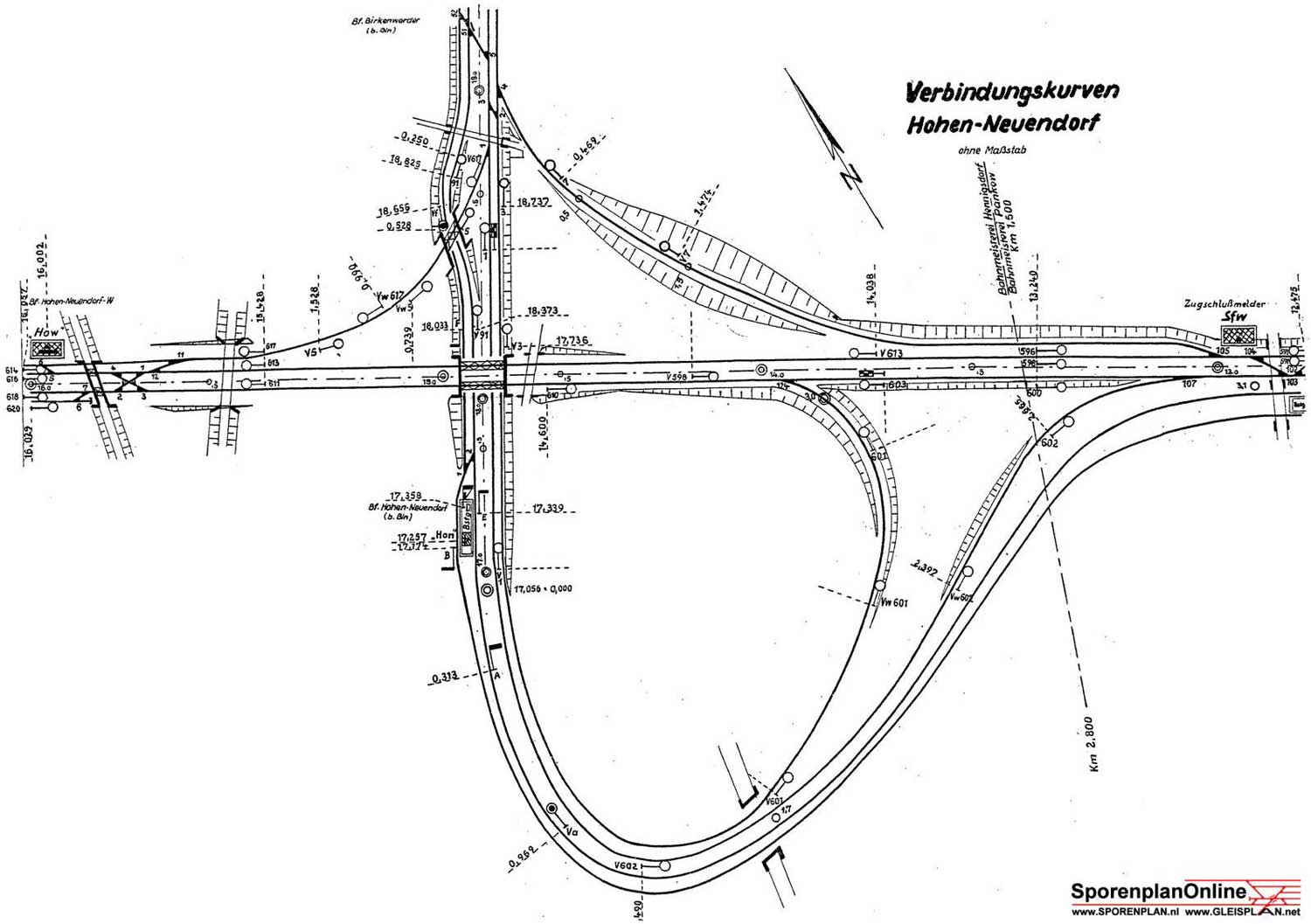 In der Mitte ankommend die Strecke Hohen Neuendorf (b Berlin), km 0,0 - Abzw Schönfließ West, W 107, km 2,970 (6092)