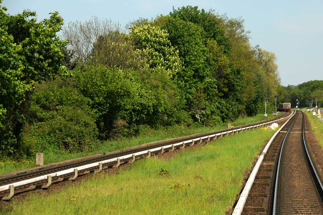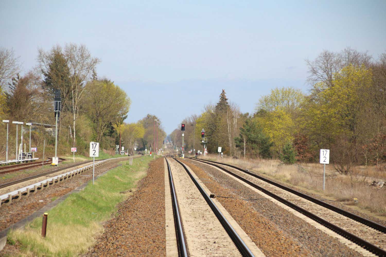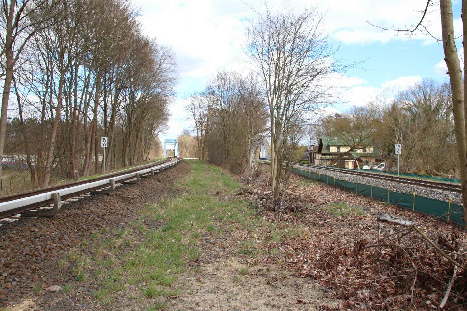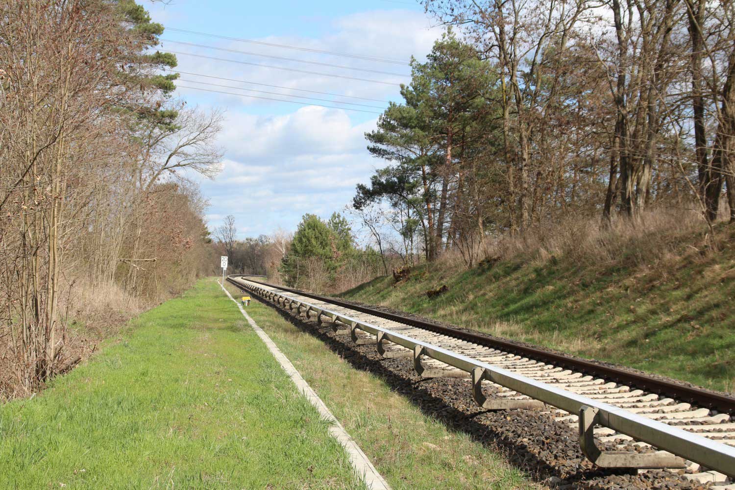 Blick Richtung Berlin km 24,8 (links) gehört zur Ostbahn (6078) Foto: Matthias Manske, April 2025
