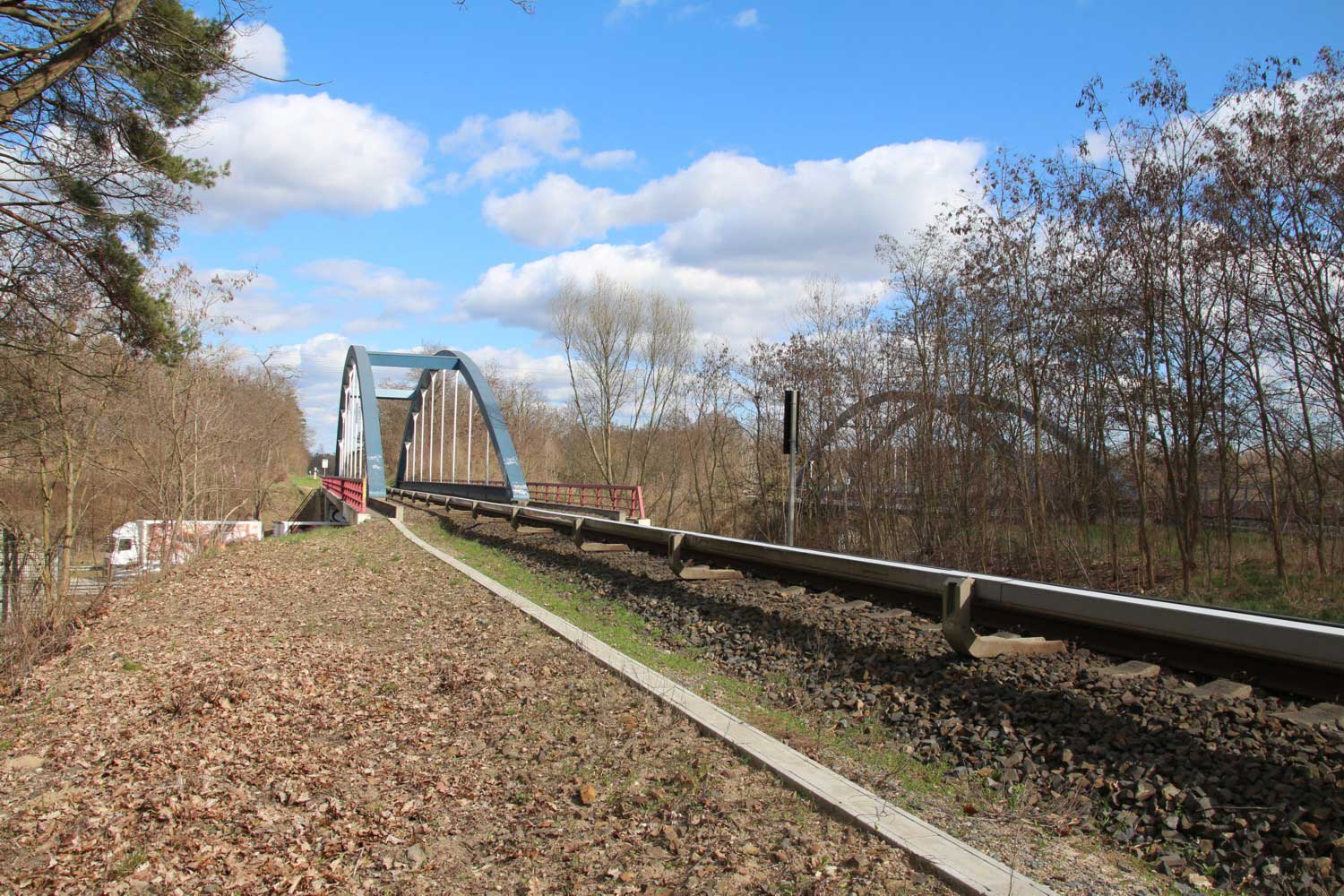 Gegenrichtungsgleis (auf der Brücke) der Strecke Berlin Ostbahnhof (S-Bahn) 0,0 - Erkner (S-Bahn) 24,38 (6004) bei km 2,6