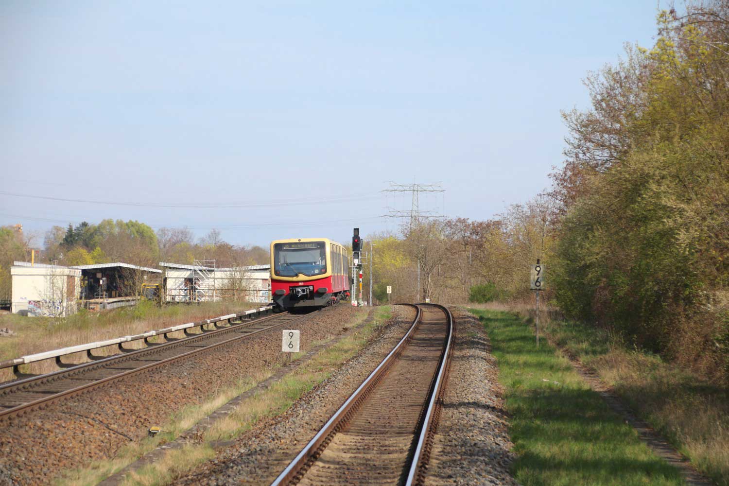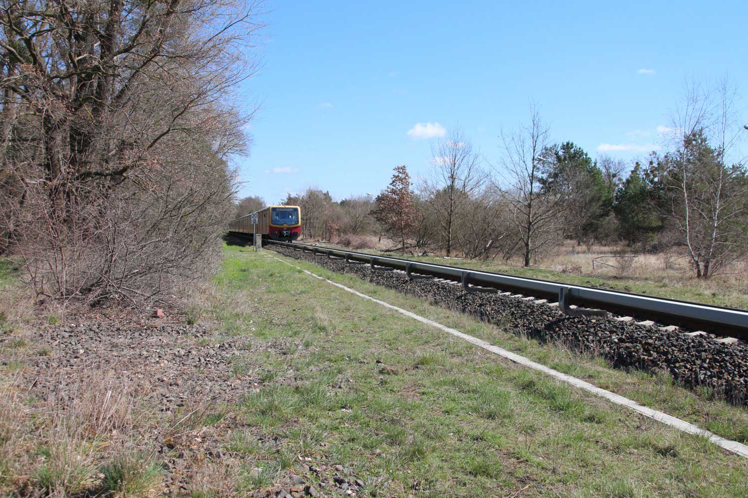 km 16,8 in Hoppegarten (Mark) - Blick Richtung Strausberg Rechts die Ostbahn (6078) Foto: Matthias Manske, April 2025