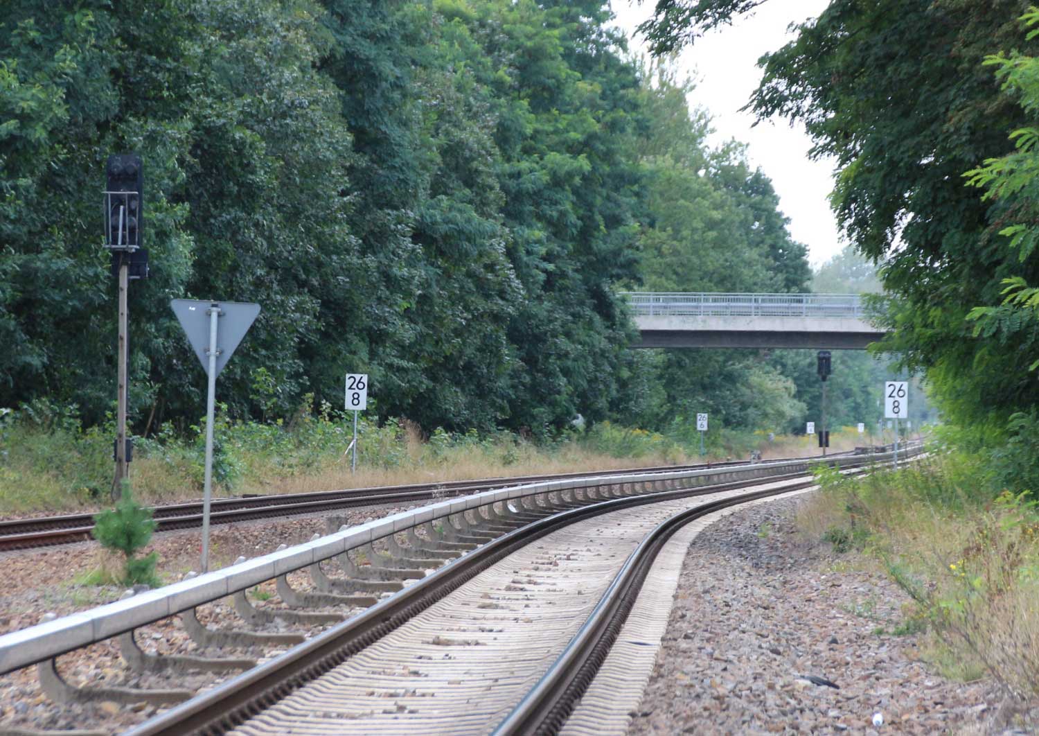 km 27,0 (links S-Bahn - rechts Fernbahn) in Strausberg Foto: Carl Fiebrandt, September 2017
