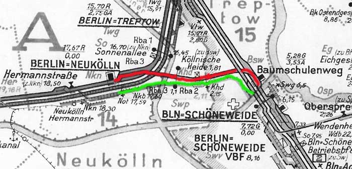 Berlin-Neukölln, W 1, km 0,293 - Abzw Berlin-Baumschulenweg, W 1, km 3,069 (6045)