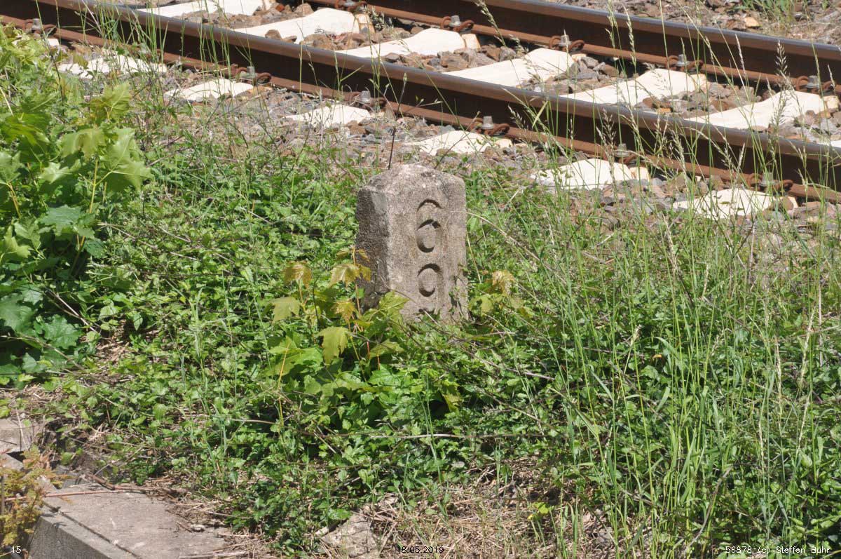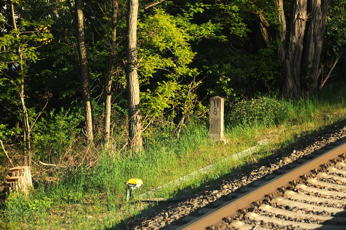 km 6,6 (Tafel und Stein) am Gegenrichtungsgleis in