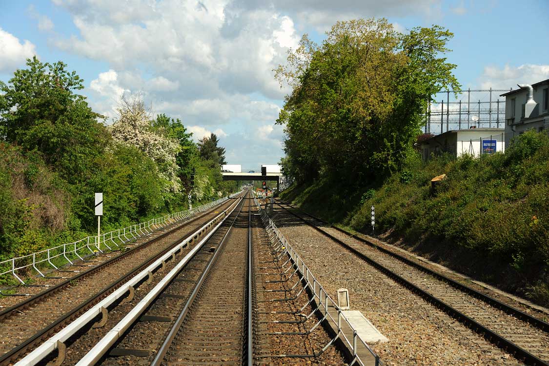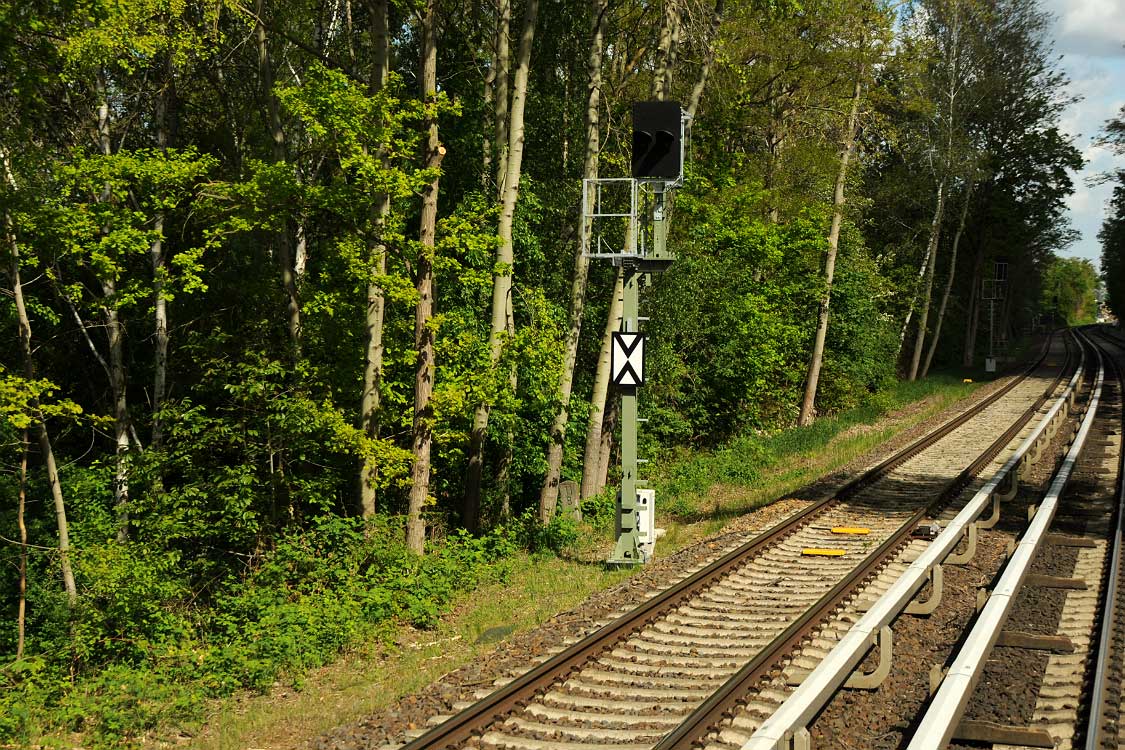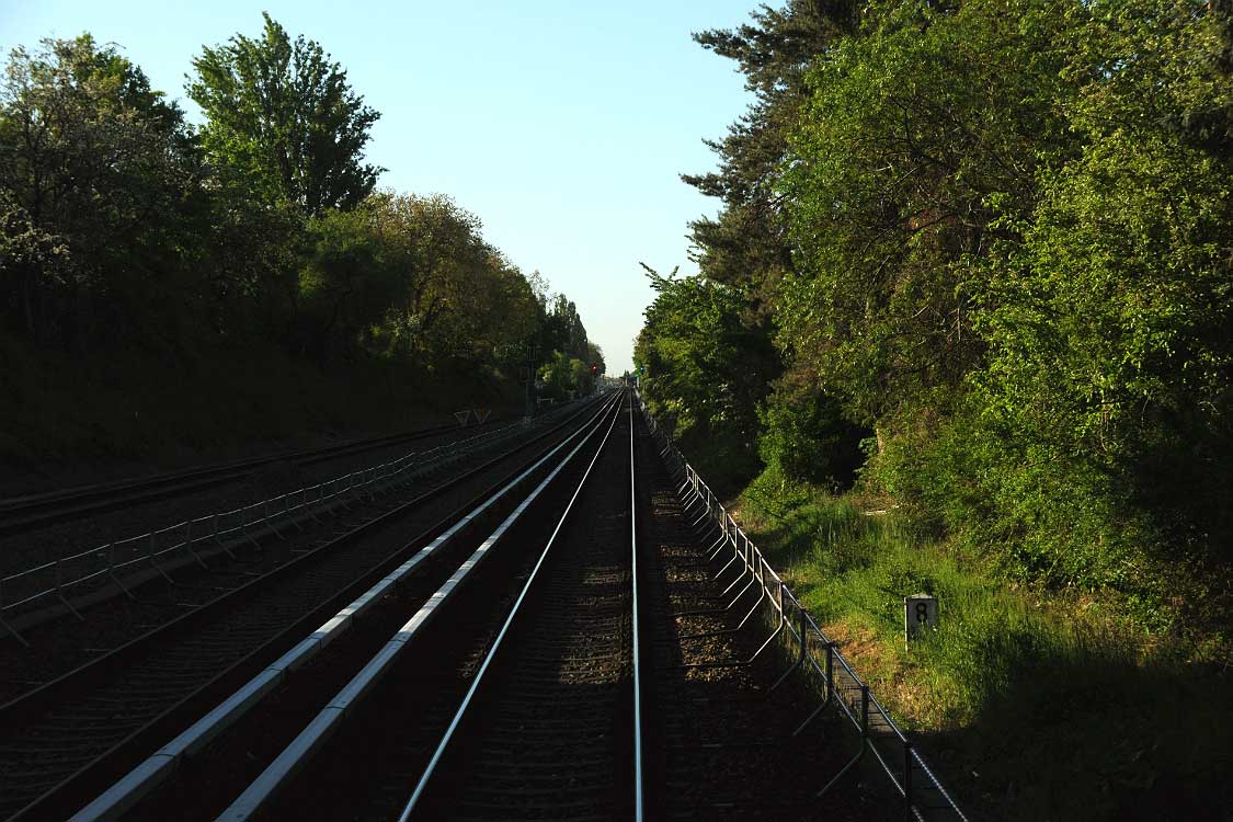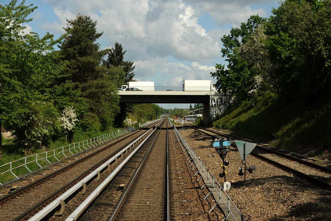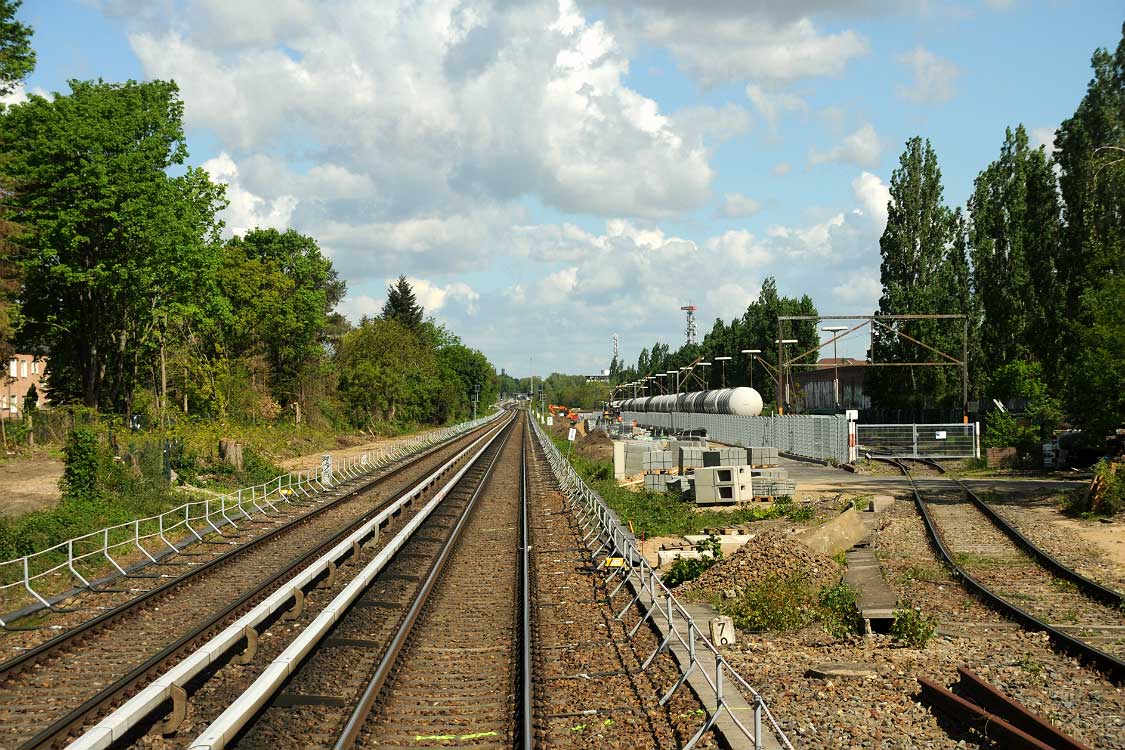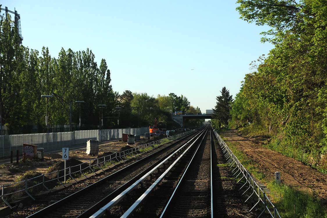 km 6,3 in Attilastraße - Blick Richtung Berlin Links das Richtungsgleis, rechts das Gegenrichtungsgleis Foto: Steffen Buhr, 18.05.2019