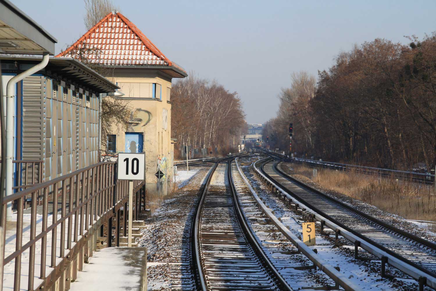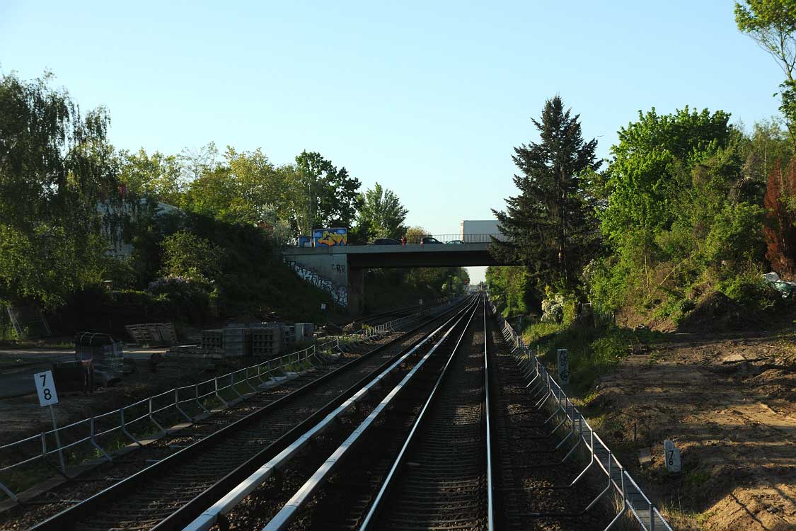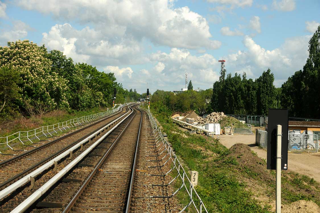 km 5,4 in Berlin Priesterweg - Blick Richtung Berlin Links außen das Richtungsgleis, rechts außen das